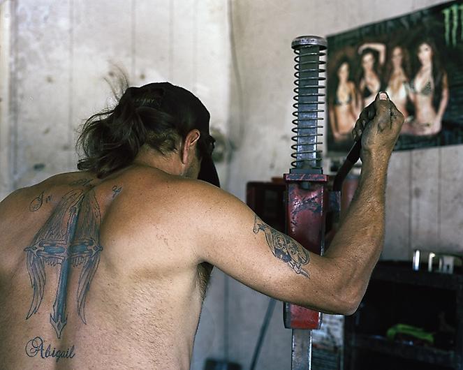Very often in contemporary photography, the action of photographing certain subcultures (most specifically, working class and blue-collar lifestyles) in the American terrain becomes an exercise in romanticizing and/or mocking or fetishizing the elements that comprise that milieu. It is a thread carried down from the 1970s, when this practice became a popular way of evoking a certain narrative. The hard-working people whose lives revolve around their cars and the landscape that they inhabit in this day and age could easily be rendered in the same format – reduced to the small signs used to contrast against the lives of those that pass through the halls of contemporary art galleries in Chelsea, New York City, while such an audience passively consumes them as fascinating tidbits. Kurland avoids this representational approach, and instead approaches the documentary procedure in a way that is both realistic and poetic, elevating her subjects to the realm of myth and heroism.