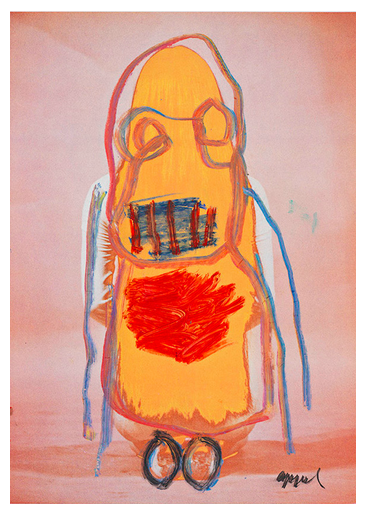 Dutch painter Karel Appel was born in Amsterdam in 1921, and worked in Europe for much of his life, passing away less than a decade ago at the age of 85. During the time of the German occupation, Appel studied at the Rijksakademie in Amsterdam and eventually left home due to his parents’ disapproval of his decision to be a painter. Perhaps as a result, Appel’s career can’t be defined by any singular characteristic other than discontinuity, and an interest in opposing expectations of normality.