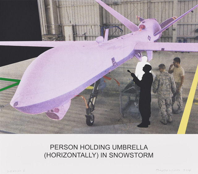 John Baldessari, The News Person Holding Umbrella (2014), via Gemini G.E.L.