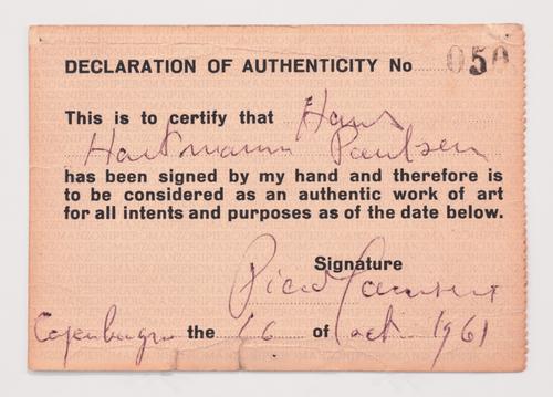 Piero Manzoni, Declaration of Authenticity No. 50 (Carte d’authenticite No. 50) (1961), via Andrea Rosen