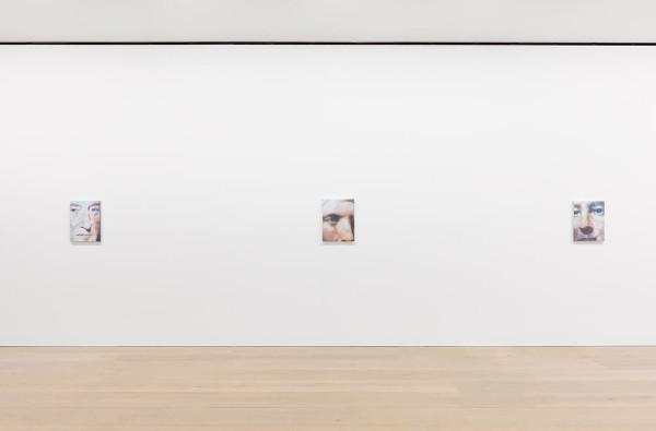 Tuymans is known for his engagement with images found or repurposed. Television footage, Polaroids, and magazine pictures are regularly featured in the artist’s work as a classical form while underscoring the trappings of visual representation. In this show, Tuymans has utilized images found online or photographs taken from his iPhone and printed, enlarged, or re-photographed many times over. The luminescence of light, reflected from these paintings and from the constantly rephotographed digital glow of the screen, brings out a strong, pixelated color palette of pale blues, a sort of haze that veils the work while addressing the fraught relationship between digital imaging and the act of applying paint to canvas.