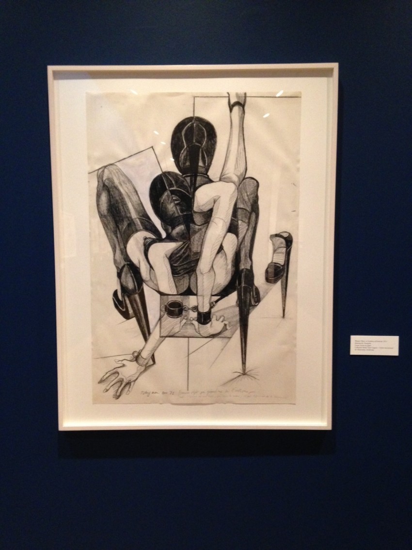 Awaiting the visitors behind a sign warning for their graphic content are Ungerer’s less known illustrations of erotic and pornographic imagery, a body of work he mostly created during his years in Hamburg during the 1980’s. Aside from his depictions of various sexual acts, Ungerer pays special attention to sado-masochism and the figure of dominatrix as “a healer.”