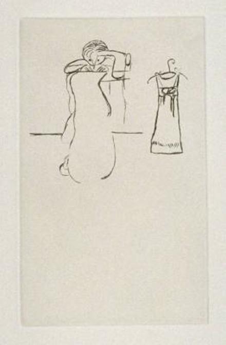 These graphic works, originally executed during the 1940’s, were finally published by Galerie Lelong in 1990 with the title Quarantania. Each work in this series tells the story of the artist’s life from a different angle, from early memories of her home in France to her experiences in New York City. A later series from 1994 is composed of various elements relating to Bourgeois’ own personal narrative: images of mirrors, scissors and sewing, bathrooms, and self-portraits reveal her strongest memories, and she explains many of them in writing through the publication entitled Destruction du père/Reconstruction du père (Destruction of the Father/Reconstruction of the Father), published in 2000 by Galerie Lelong.