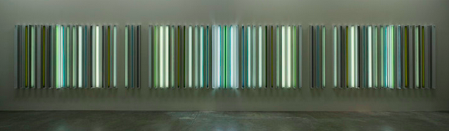 Extended viewing of these works creates an effect of almost hallucinatory awareness, as differentiation in pattern, brightness and color from tube to tube (and work to work), allow any number of new patterns of seeing to emerge. Much akin to his peer James Turrell, Irwin’s work places the act of seeing itself at the forefront, and allows the viewer to generate their own narrative arcs to the gently glowing arrangements on view.