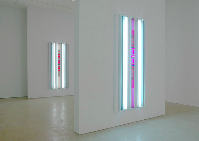 Currently on view at Pace Gallery’s W. 25th Street location is a set of new, “site-conditioned” works by Light and Space pioneer Robert Irwin, continuing the artist’s ongoing experimentation with the perceptual capacities of fluorescent lighting, and the complementary reactions of color, shadow and spacing.