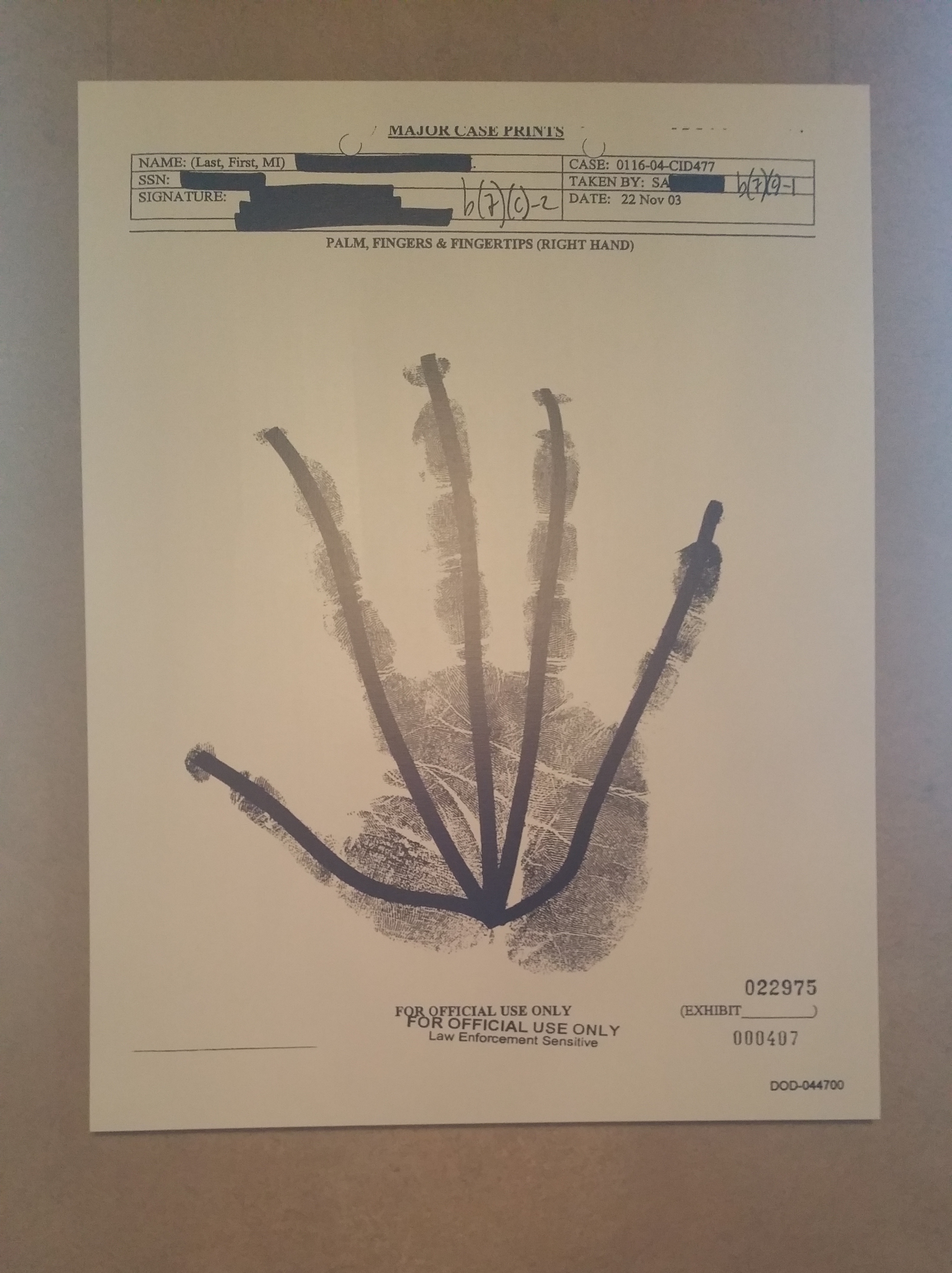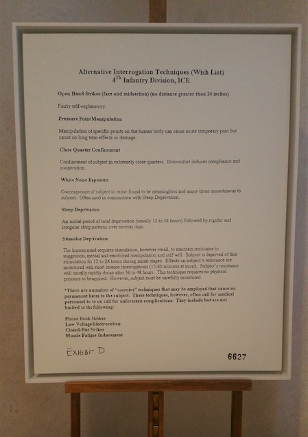 What’s equally interesting here is how the artist’s practice seems to tacitly respond to an American society still coming to grips with the massive leakages of data and extra judicial activity made public by Chelsea Manning and the Wikileaks website. As much as Holzer seeks to publicize these images, her works also speak to a world in which these documents are immensely more accessible, creating a world where the public is often awash in information regarding political abuse and international violence. As much as she seeks to expose, Holzer also makes a case for the organization and cataloguing of this data, an act of preservation that prints the shadowy world of modern politics into the record books one way or another.