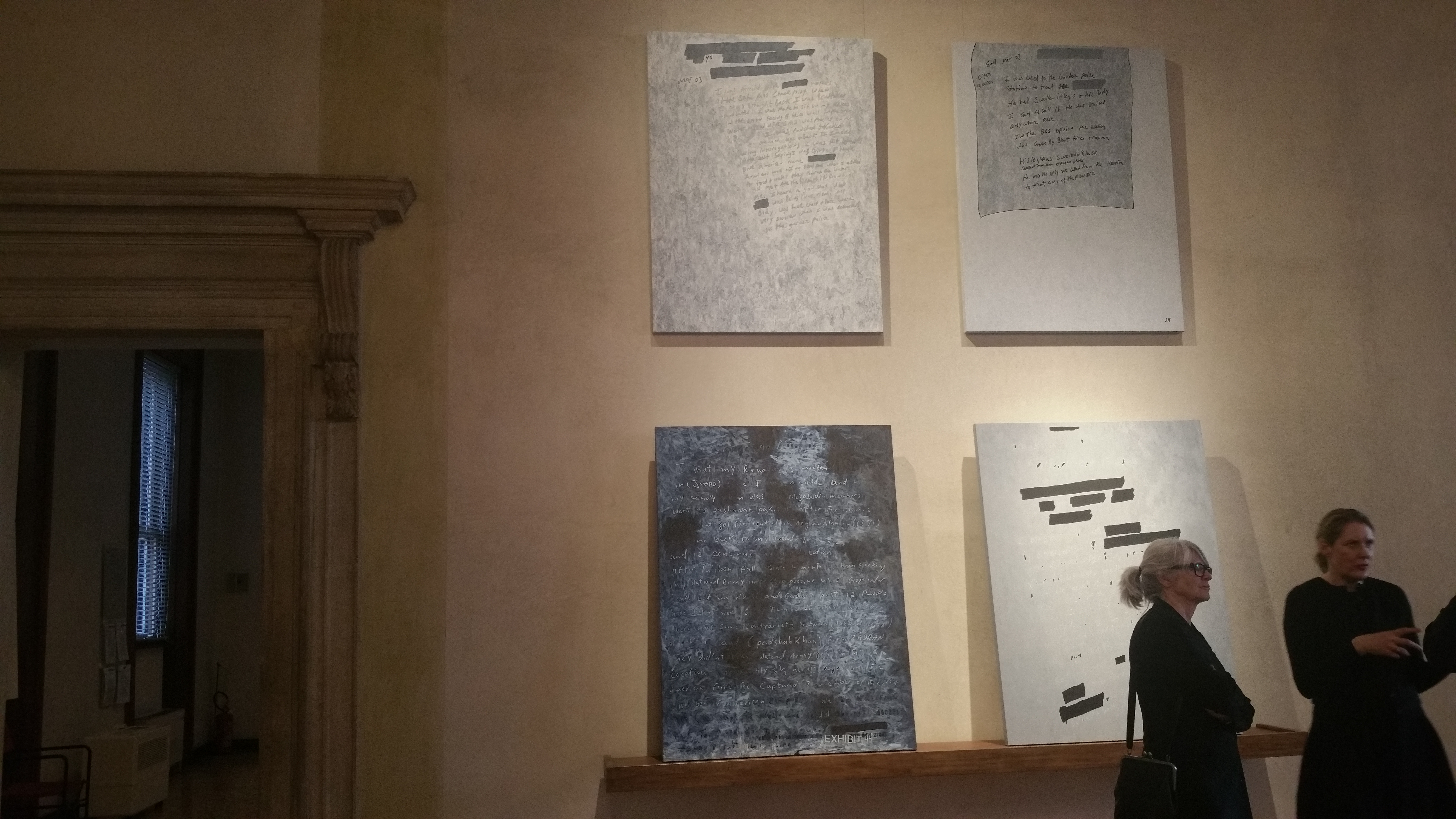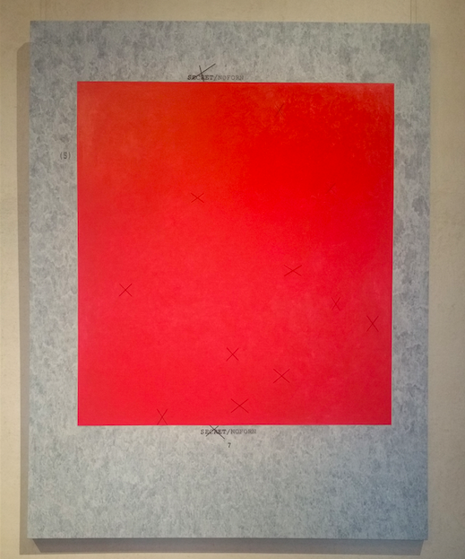 Holzer’s paintings of redacted documents are as much a tribute to the minimalist exercises of the mid-twentieth century as they are to the political groundings of today, and allow a peculiar intersection of histories that ultimately challenge the museum’s space as an apolitical or neutral political sphere.