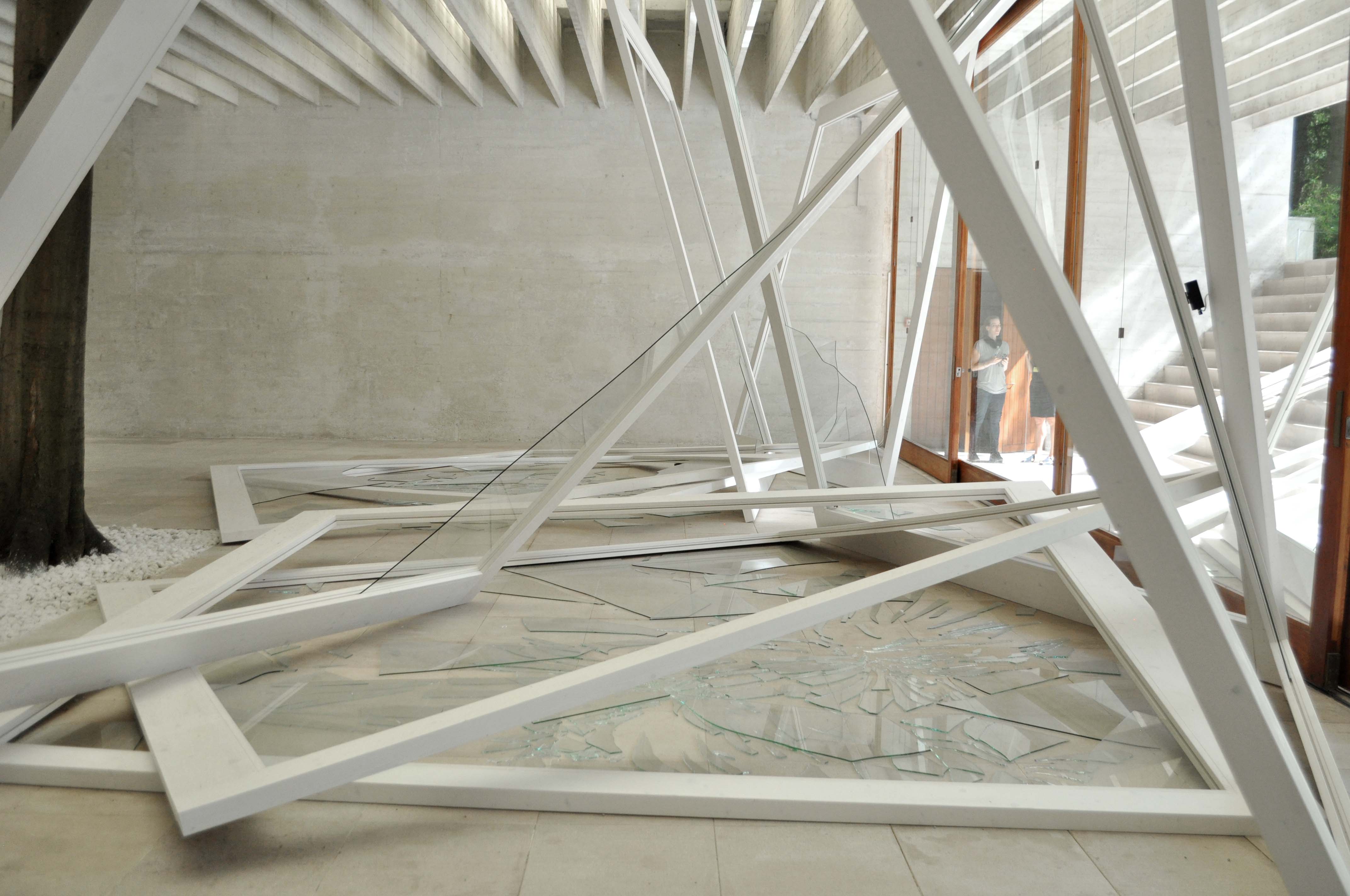 Also of note at the Giardini was Camille Norment’s Rapture, a strange, tense installation that takes the piercing, resonant tones of the glass harmonica as a starting point to explore the duality of violence and peace, action and repose at the Nordic Pavilion. Featuring the otherworldly space of the pavilion prominently, the architecture is adorned with speakers playing a churning, high-pitched composition, in contrast with broken glass and debris littered across the rooms of the show. At the German Pavilion, Hito Steyerl leads a group of artists interested in the “changeability” of the image, with video playing inside a minimal, futuristic landscape. Joan Jonas also presented a video-centric installation at the United States pavilion, presenting a body of work investigating interactions between various species of animals.