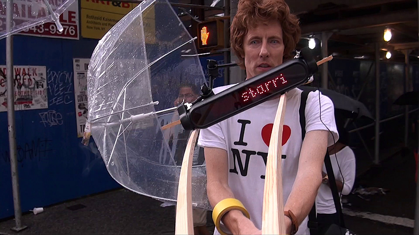 Accompanying these works is the artist’s Home trilogy, completed in 2012, and shown here in its complete hour and a half runtime. Suspending the sole character somewhere between the poles of the other two series on view, Home seems to explore a weirdly surreal experience of modern life, sending actor Brian Kerstetter’s icily blue-eyed character on a journey around the world, encountering the conditions of modernity and the people living it out day by day. Using the character as a momentary inversion of the artist’s own person, Home seems a key of sorts to the exhibition, a study of the artist’s experience in the world, and his efforts to turn his experiences towards a new direction.