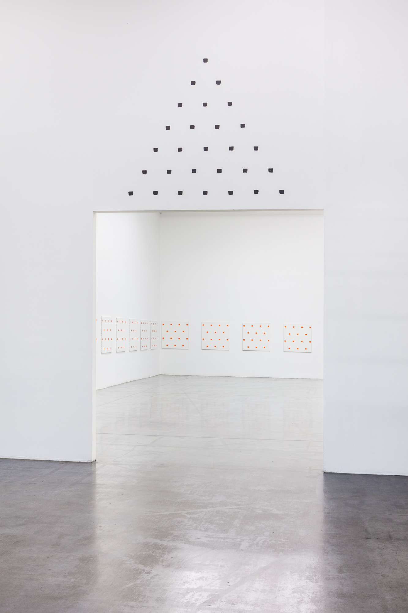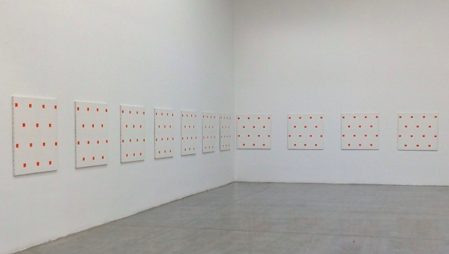 Niele Toroni, Imprints of a no. 50 brush repeated at regular intervals of 30 cm (2015). Courtesy Marian Goodman Gallery