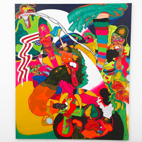 Over the past half century, American art has distinguished itself as much for its formal heroes (Pollock, de Kooning, Judd, etc.) as its outliers, artists working along distinct threads of the abject, pop culture and mass production who challenged the more refined and neatly conceptualized exercises of the 20th Century avant-garde.  This separate thread of American art, running from 1960’s comic-book art through the punk and funk movements of the 1970’s and onwards through the chaotic energies of turn of the century performance and video are the subject of What Nerve!, a documentation of the American underground at Matthew Marks.