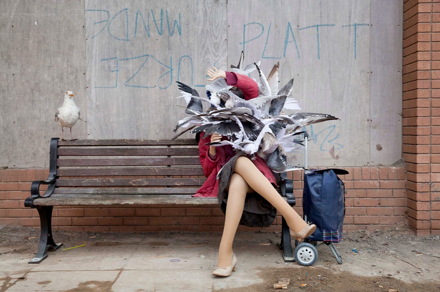 It’s notable to consider the tone of Banksy’s recent appearances, including 2013’s ongoing series of projects in New York. Playing on his own notoriety, the exhibitions seem to present economic stimulus as an ulterior motive. In New York, it was an emphasis on the city’s enterprising citizens and the often obscured economics of street capitalism. Here, the somewhat languishing tourist site of Weston-super-Mare becomes a destination again through some light subversion. The ticketing chaos that has already marked the opening days of the exhibition is more than enough proof, with millions clamoring to see the exhibition and admission only available at the door. The resulting lines, with stone-faced visitors waiting hours to see the work, is perhaps just as fitting with the artist’s intentions as any work on view.