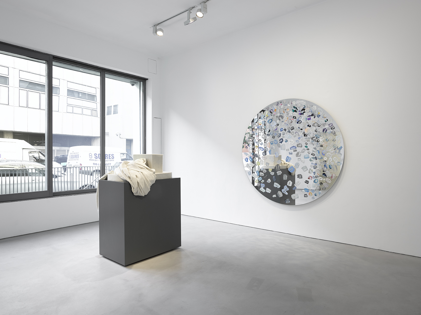 Alongside these works, the artist is also showing a series of his ongoing sculptural works, playing on immediately recognizable forms and recognizable art objects, particularly classical Greek sculpture, yet depicting the works as devoid of their subject, hinting that the figures themselves may be elsewhere. Also of note is Night and Day, an impressively rendered tent sculpture created from a semi-transparent resin. With a light inserted inside the work, Gander’s sculpture puts off a healthy glow, giving the impression of a secret guest hiding inside the work, or perhaps an absent resident. Playing on its location just outside the gallery, the work also has a fittingly comical inversion on the staid, quiet atmosphere of the gallery.