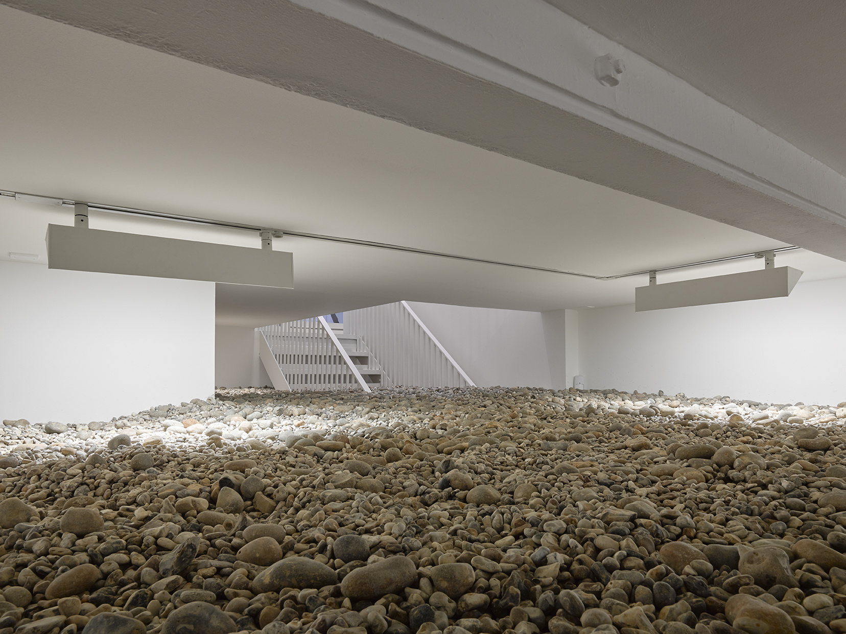 Yet the exhibition continues to offer surprises beyond this visually complex piece. Never enough fills the downstairs gallery with pebbles, recalling a punishment for smugglers in past eras, a tie to both Gander’s home in Suffolk, and its ties to shipping industry. Considering Gander’s ongoing interest in the replication and duplication of materials from the art historical, it’s also worth noting the intersection with notions of authenticity and grey market goods, as if the artist was interested both in the replication of materials, and the consequences his work could in fact have earned in other eras.
