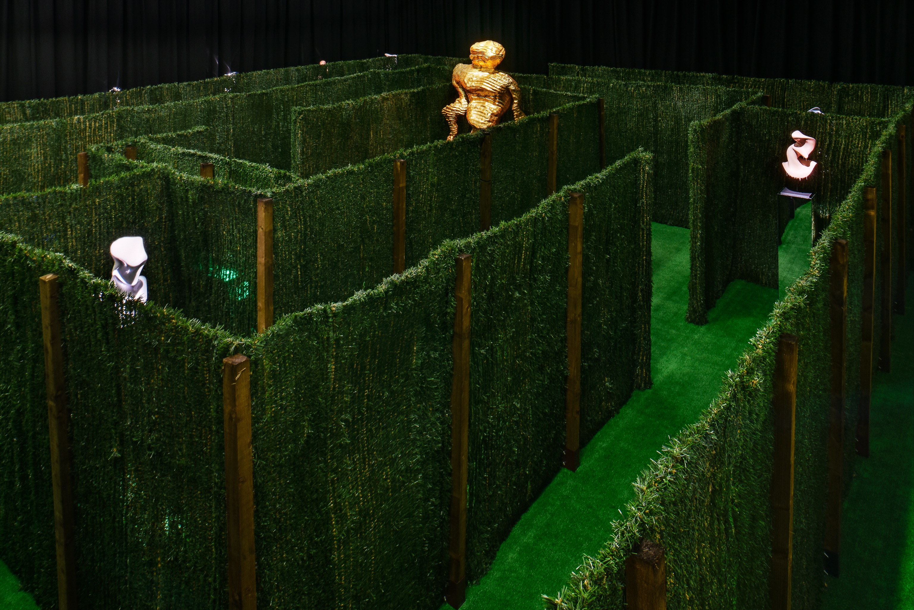 Walking into the Zabludowicz Collection, Rafman has installed a large-scale artificial maze populated with digitally manipulated sculptures. The installation heightens the shuttering collapse of individual distinctions between the real and the digital, as visitors enter Rafman’s virtual space using Oculus Rift technology. Within the maze, the imaginary meets with the real, as visitors engage in tangible experiences and lose their controlled perceptions of time and space. The installation allows for visitors to engage with this fantastically digital realm that Rafman has created, and pushes visitors to interact with their environment as if they were characters in a video game. Weaving through the maze presents the viewer with a line of interactive challenges, which allow actual experience with digitally perceived reality to merge.