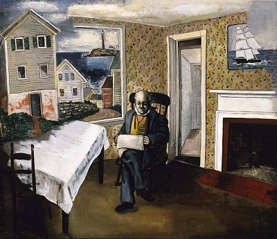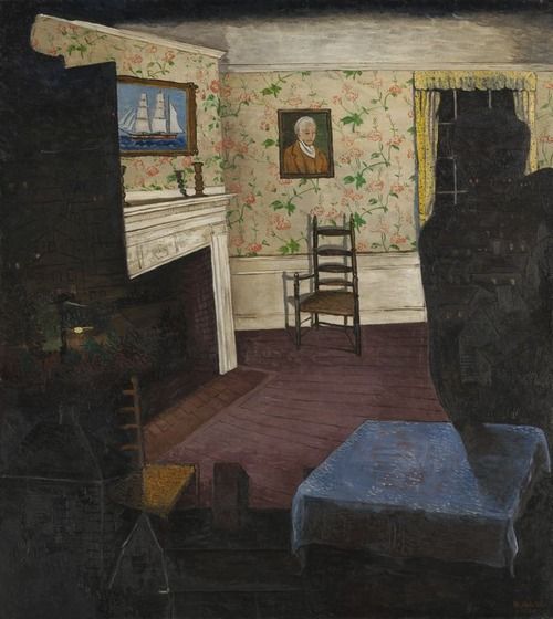 Gretchen Scherer’s The Last Show is a dark and jumbled painting of an ornate theater. The painting responds to two paintings of interiors by Morris Kantor, Haunted House (1930) and The Captain’s House. Scherer writes, “My paintings are also made up of many disjointed pieces and are based on interiors from around that time period. It is interesting that we both painted the same type of interiors, but he painted them at a time when the interiors were contemporary to him and I paint them now that they are in the past. Seeing his work for the first time revealed a sudden juxtaposition: my paintings are about looking back and trying to bring something from the past back to life. Perhaps Kantor did exactly what I hope to do but in the opposite way. He painted what was contemporary to him and with the passage of time acting as the vehicle to the past, we see a time that has long passed but is still alive through the act of his painting.”