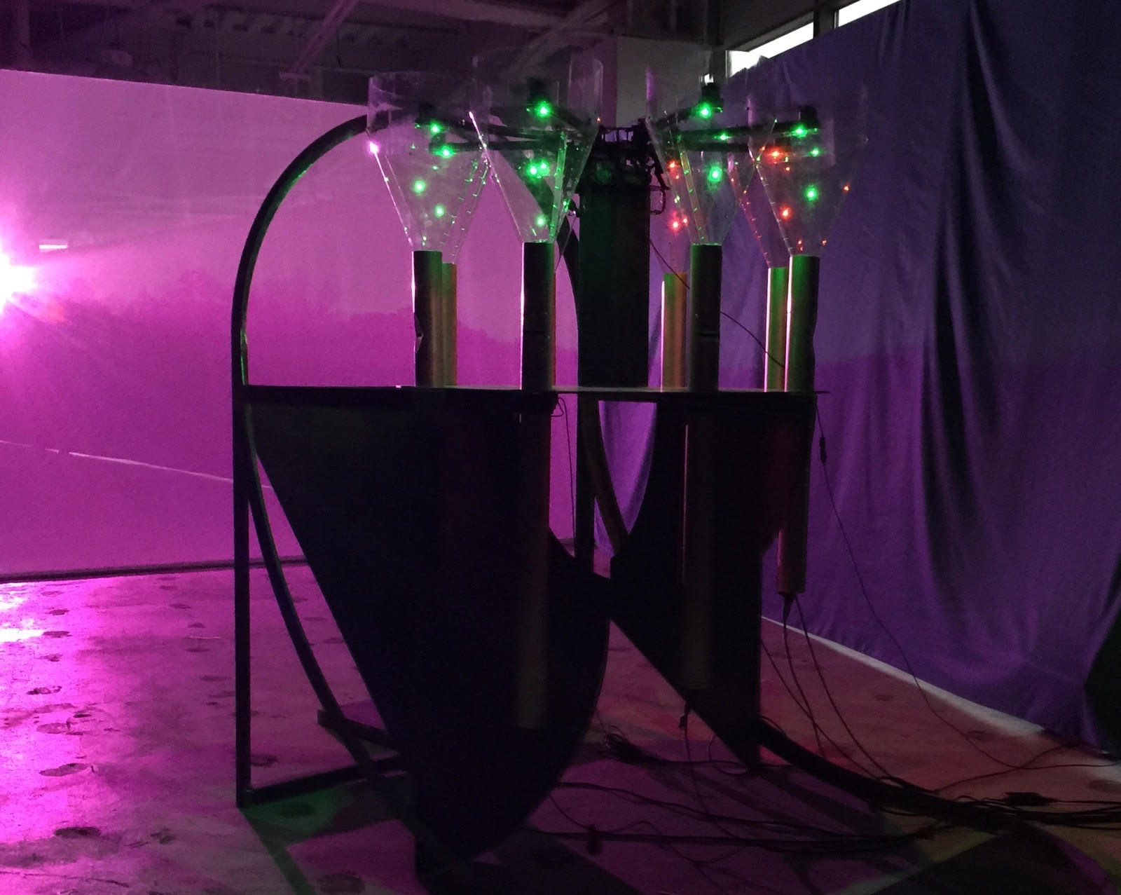 Passing through the space, one noticed a series of painted window pieces, obscuring portions and sections of the surrounding buildings, turning the flat panes of reflective glass around the viewer’s vantage point into a series of geometric inversions, while nearby, a strange, foreign machine whirred away. Elsewhere, one could view a video of another skyscraper, projected on a scrim, where employees could be seen at their desks, working diligently. Alienated from these office scenes, yet presented in an almost identical context, the alienated viewers were offered a moment of shared camaraderie with these workers, and the performers laboring within the space.