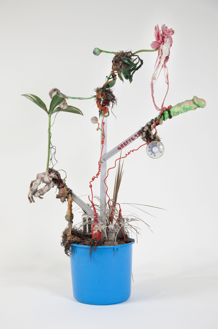 As explored here, Kudo’s pieces conjure a deflated sense of both the human body, and the splendor of nature around it. Detached human phalluses, fingers, and other body parts, caught in mid-decay, are juxtaposed against sickly plants and thin, snaking vines, often appearing to choke what little life is left from the human form. The works, created in response to the overt optimism of post-war Paris and the explosion of consumerist culture in Kudo’s new home, takes this relationship between the plant and body as a core structure. In its rotting, deathly form, one cannot avoid the body’s new role as food for the plants which spring forth, as if the fading remains are the reason a new spawn of life can come forth.