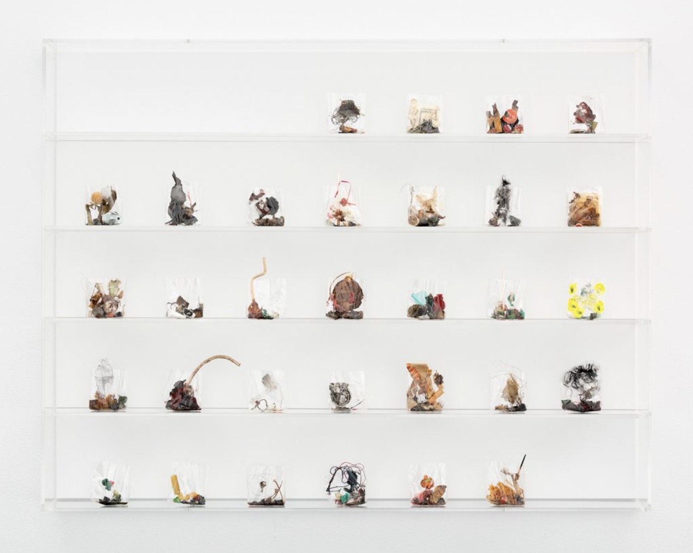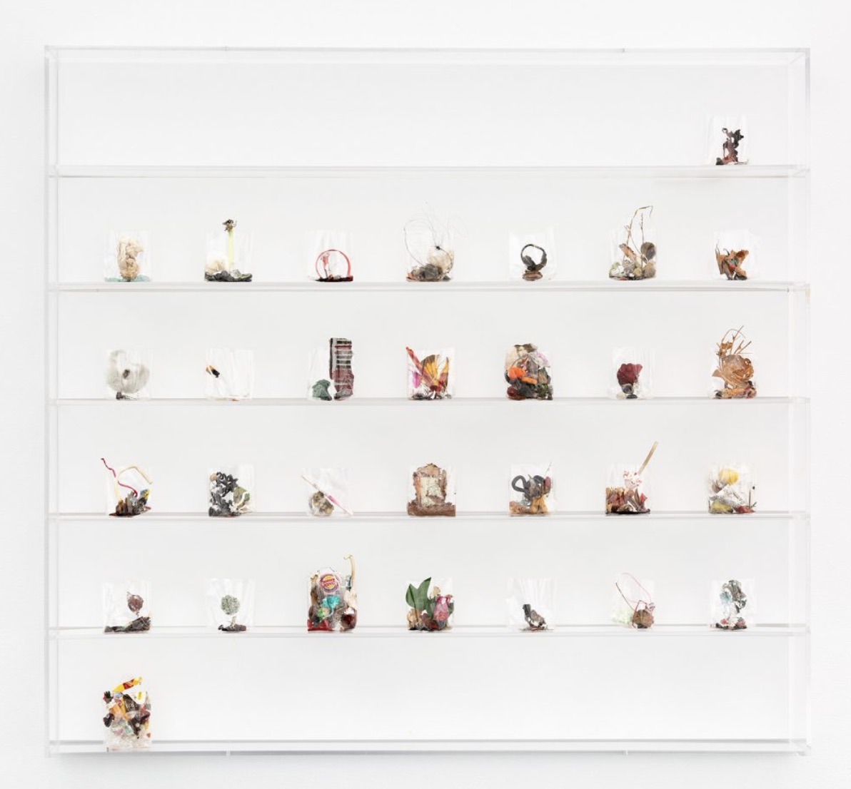 This most recent show almost a decade of the artist’s evolution and the increasingly nuanced aspects of his practice. Showing the emergence of his widely recognizable zips, daily sculptures contained in cigarette box cellophane wrappers and displayed in monthly configurations, a sort of calendar of encounters that that explore the artist’s movements and personal aesthetic leanings as a marker of time itself. The 1995 ziplocs operate in a different mode of observation than the subsequent 2003 zips, a point that traces Agematsu’s own changing awareness, and equally the shifting relationship he has to his city, nearly 10 years apart. Held tightly within the ziploc’s plastic sleeve, these almost clinical stagings appear like examination slides or even investigative evidence. They express a peculiar material distance, not so much the ecological relation of artist and object in Agematsu’s more recent work, but more a opaque sensation, one of altered time and movement within the artist’s mind, and the collected memories of the paths he walks every day.
