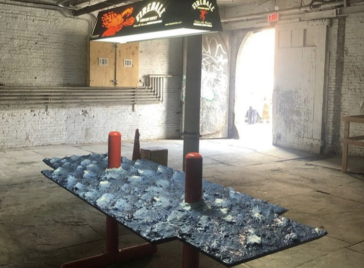 Held in collaboration with Tungsten Partners, the exhibition welcomes a series of both local perspectives on the area, and an expanded sense of how the Bushwick neighborhood has become a hub for international exchanges in the artists. The first room welcomes the works of Japanese artist Yasue Maetake and Andrew Erdos, who has worked in the area for several years. Using glass as his primary medium, Erdos’s work explores intricate investigations into landscape and time, forming massive geological analogs that underscore the artist’s process and material in exchange with broader sensations of our global ecological systems, while Maetake’s mixed-media sculptural works investigate the liveliness of matter, artifact’s material and expressive qualities as well as the infinite possibilities of forms. Conversing through their distinct practices and shared awareness of materiality and time, density and balance, the combination is an intriguing set of selections.