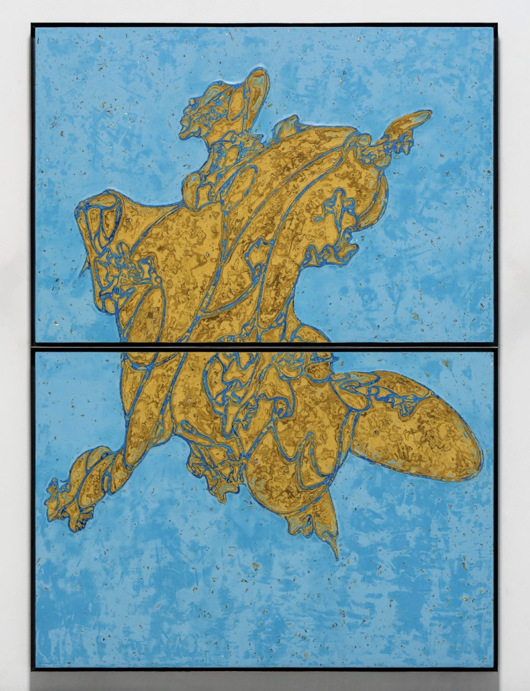 Bul’s work, often drawing on divergent explorations of the boundaries between representation and abstraction, explores a range of bodily forms and ruptures in the expression of the body and its replication as image. Exploring the idea of the body in either transcendence over the physical form, or a sort of biological, evolutionary interlude, her work is both a constantly expanding graphical inquiry into the body in flux. In her most recent Perdu works, Lee Bul explores these binaries, between the artificial and the organic, the conceptual and the material, time and movement. Composed of organic and inorganic material such as mother of pearl, velvet, and acrylic paint, the artist’s otherworldly visions of fragmented bodies are seemingly caught on the move, at various distances and in differing detail.