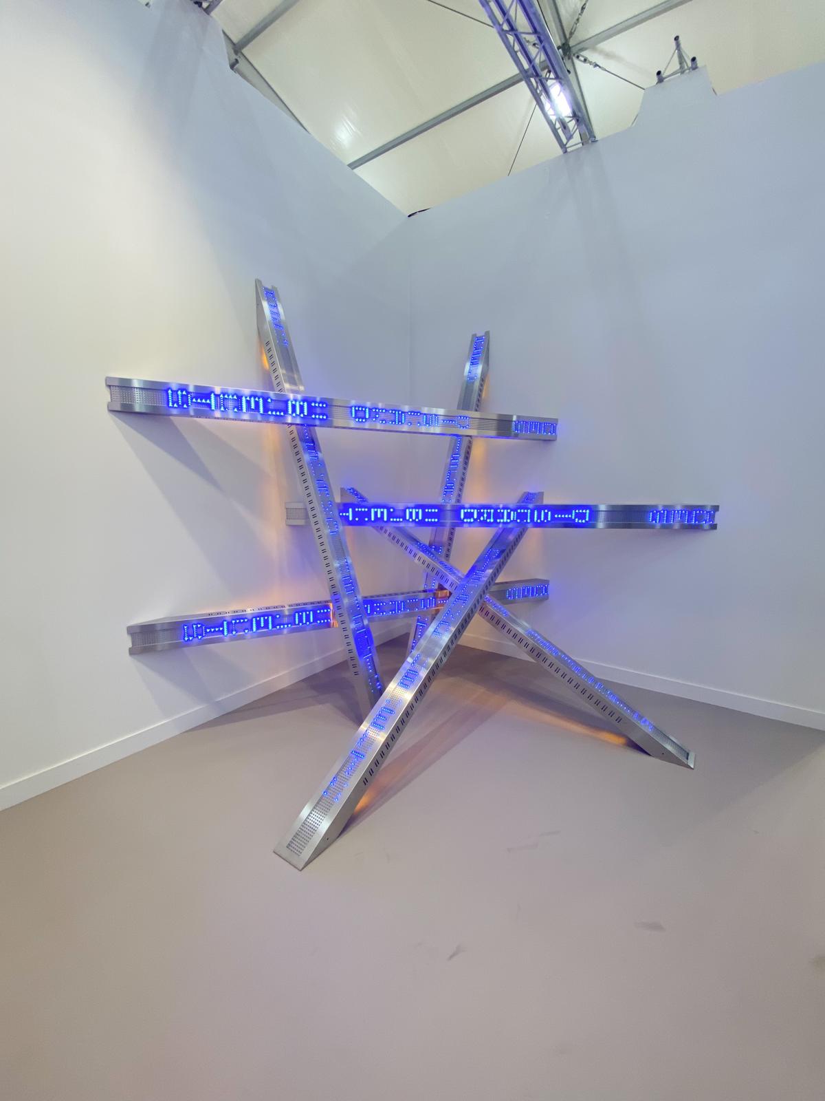 The fair’s atmosphere and energy was matched by a parade of celebrities and buyers. J.Lo could be seen negotiating prices at one booth, while Alex Israel seemed to be everywhere at once, walking the fair and also hanging on the walls. At Sprüth Magers, one could view a massive scrolling light display by Jenny Holzer, while at Koenig Galerie, Alicja Kwade was presenting a selection of her signature works fusing precise elements and natural materials. Thaddaeus Ropac also had a strong booth, showcasing work by Georg Baselitz. The gallery also sold a Robert Rauschenberg piece for $1.35 million.