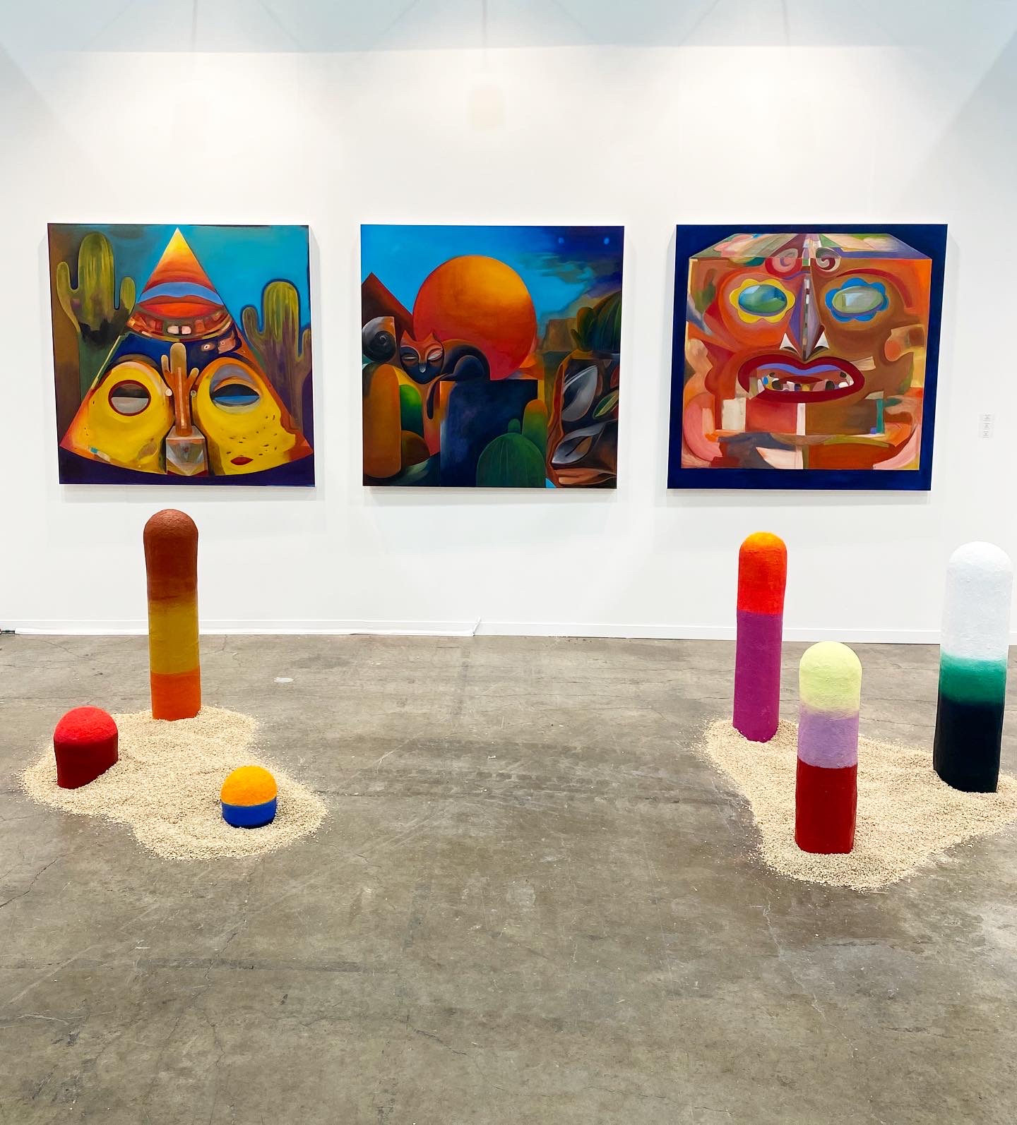 At Galleria Poggiali, one could view immense arrangements by Zhivago Duncan, intricate patterned compositions that resembled floor tiling yet seem to twist in and our of easy recognition, while at Versus Art Projects, a surreal arrangement of colorful pillars and graphic canvases made for a striking, otherworldly installation inside the gallery space, a world of its Çagla Ulusoy. HOFA Gallery was also presenting an interesting booth, with figurative inversions of the human form in both paint and sculpture by artist Katya Zvereva.