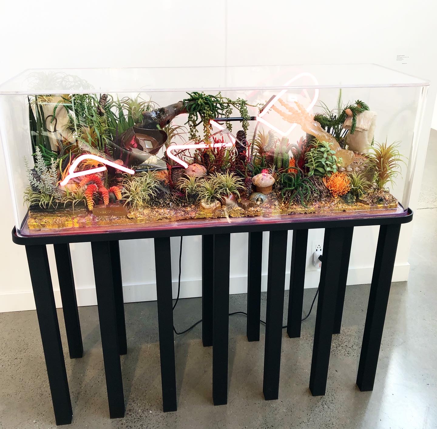 The fair had also scattered a series of project-based concepts across the fair, including a special pop-up edition of the Object and Thing design fair, which paired together imaginative design pieces alongside works, peering out at the rest of the fair from above in of the exhibition space’s cozy elevated rooms. In another space, Red Bull Arts was presenting work by artist Akeem Smith, which featured an ominous soundscape with a scrolling series of photo images girded inside a wrought iron fence.