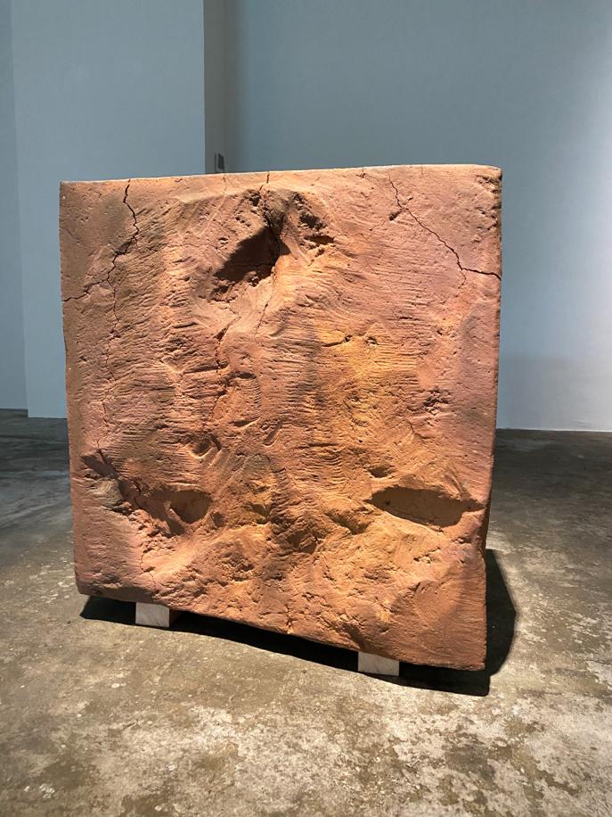 In addition to the new series of paintings, the gallery is presenting a selection of Sodi’s clay sculptures, created at the artist’s studio, Casa Wabi, in Oaxaca, Mexico.  In these works, the artist extracts raw earth from the ground and combines it with water and sand to form clay. He uses this elemental material, embedded with ancestral significance, to create minimalist sculptures. Once cured, the clay sculptures are fired in a traditional brick kiln with wood, jacaranda seeds, and coconut shells, a process that imbues the sculptures with varied terracotta hues, streaks of green and black, and a multitude of fissures in the surface, giving each cube a unique identity.