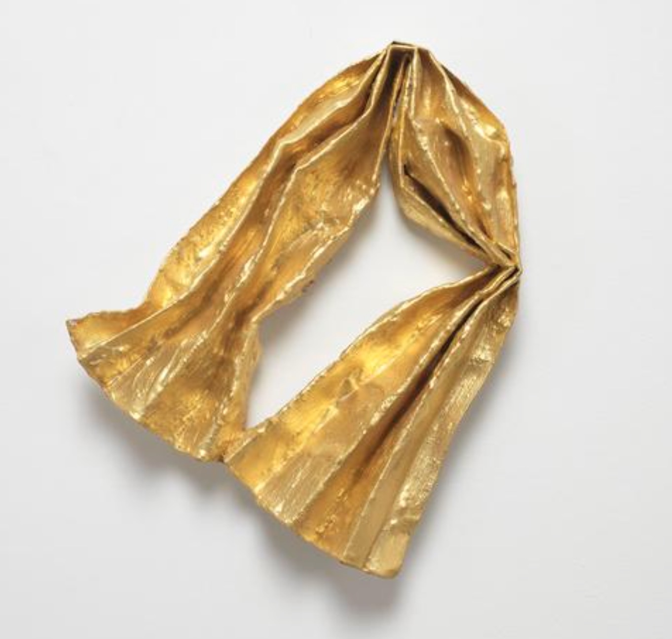 Closing today at Cheim & Read and previously on view through December 3rd at Ortuzar Projects, Lynda Benglis’s early work gets a renewed perspective, exploring the artist’s dense material innovations and explorations of the body in relation to sculpture. Compiling a range of works that have proved crucial to the development of Lynda Benglis’s practice during her first decade in New York, the show spans three separate locations, offering an impressive and expansive look at the artist’s work. On at Cheim & Read’s uptown exhibition space, a series of lozenge-shaped wax paintings are juxtaposed with Benglis’s latex and polyurethane pours, while one floor up and the Ortuzar viewing room, one can view a selection of gilded wall sculptures inspired by the caryatids from the porch of the Erechtheion at the Acropolis in Athens. Sparkle and metallized knot sculptures, including the multi-part installation North, South, East, West, 1976 – last shown in New York at a 1981 Whitney Museum exhibition – are on view at Ortuzar Projects on White Street in Tribeca.