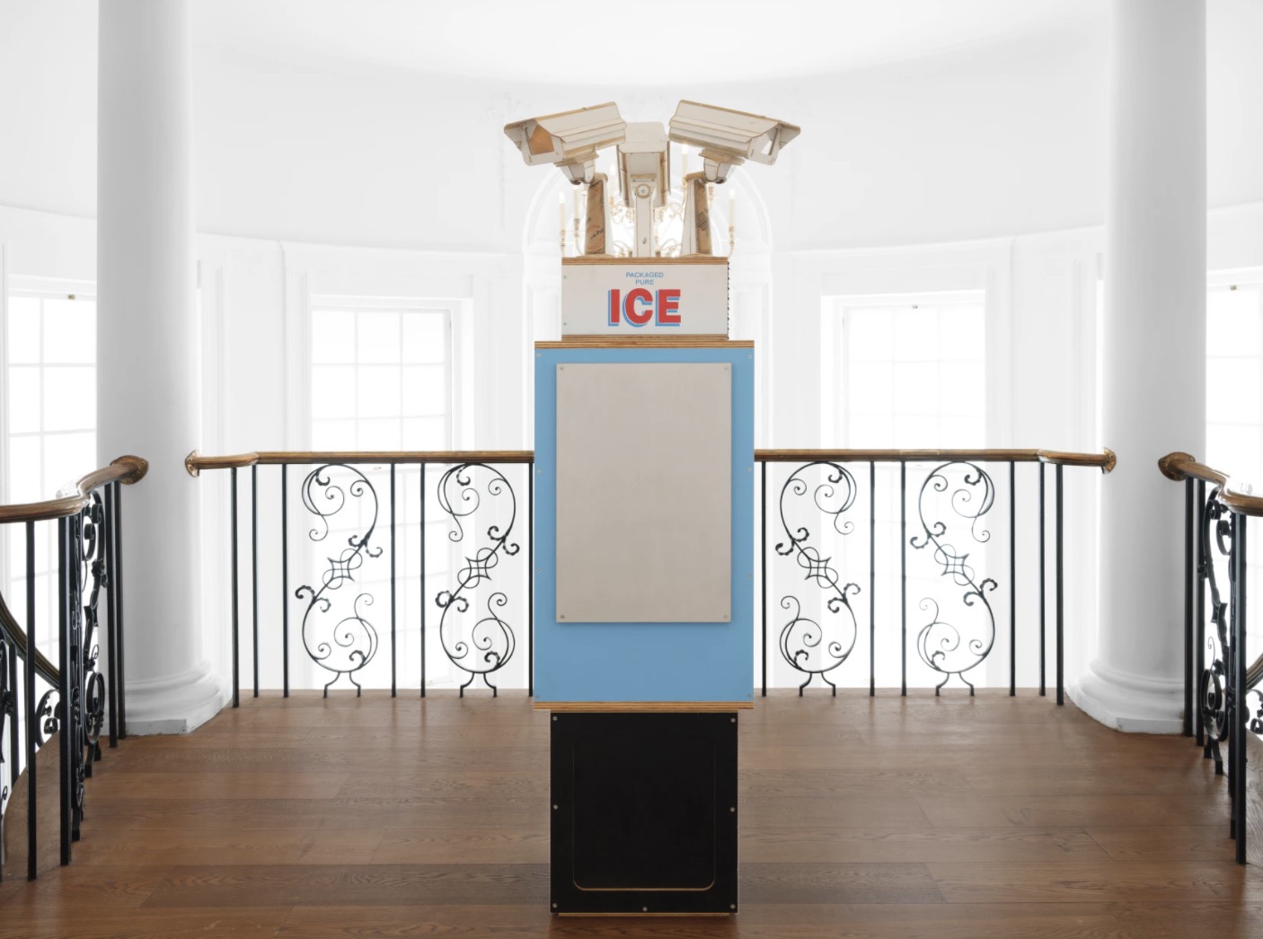 “Everything in this show has something that is formally prioritized,” says Sachs of the work, “whether it’s a leaf blower, a surveillance camera, a milk crate or Kelly bag. Everything has form, but the objects are selected and presented so that their shapes along with their pedestals engage the viewer in the tradition of modernist sculpture, at eye level on a plateau.”