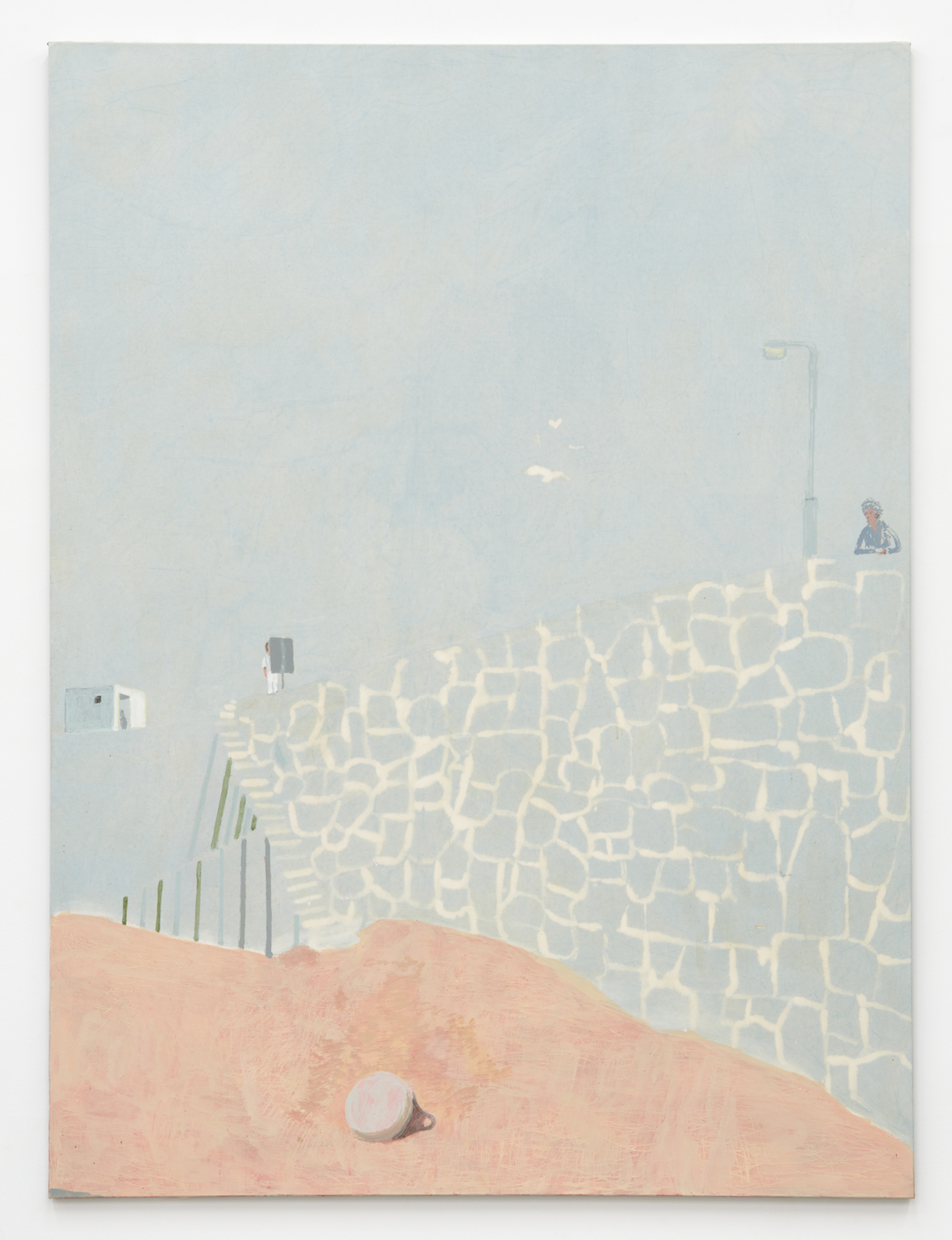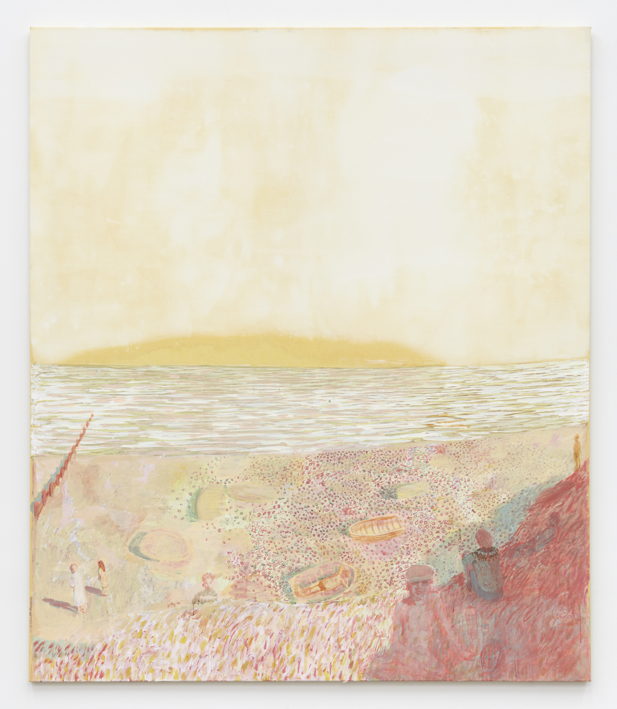 The imagery draws from stories, poems, images, and experiences that emerge from the artist’s subconscious. Each painting’s layering is guided by intuition: a reference to a Carole King album cover is interlaced alongside allusions to jazz history, the writing of Muriel Spark, and visions of the Scottish coast, each mingling on the work as a series of enigmatic touchstones orchestrated into a broader meditative reflection on the memory as both a reflection of the past, and a concatenation of it.