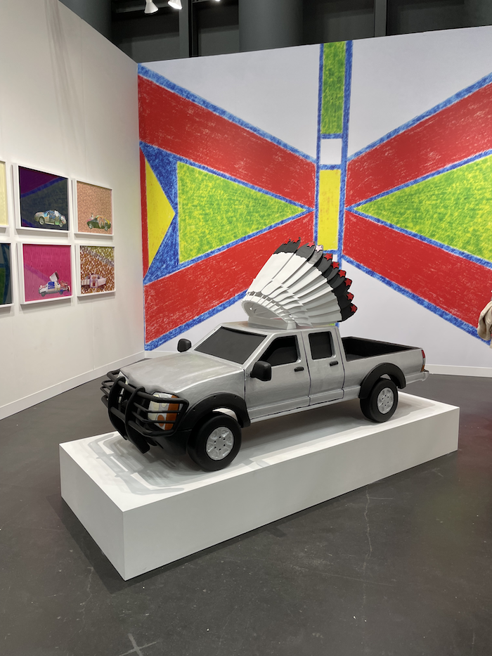 Organized by Wassan Al-Khudhairi, the Chief Curator of the Contemporary Art Museum, St. Louis, Focus included James Fuentes, who presented Didier William’s colorful large-scale paintings in which viewers reckon with the dissociated body. Also included in Focus, Sargent’s Daughters featured Wendy Red Star (Apsáalooke/Crow) in a booth centering around her papier-mâché model of a pickup truck adorned with an honor bonnet devised by the artist’s grand-uncle, an Apsáalooke knowledge keeper.