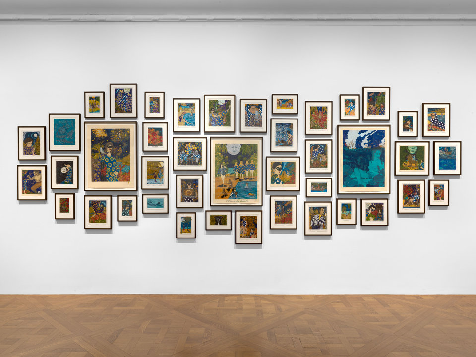 Drawing its title from the Velvet Underground song, Who Loves the Sun compiles a selection of new drawings that expand on Dzama’s already well established techniques and style, inspired in particular by trips to Morocco, Mexico and Fire Island before the pandemic. These photos serve as a bed for the drawings here, incorporating elements into the works and embellishing them with tropical imagery, depictions of leisure and play, and bright colors with illustrations of masked and mysterious characters, as well as dancers, wild animals, and hybrid figures inspired by mythic, biblical, and literary subjects.