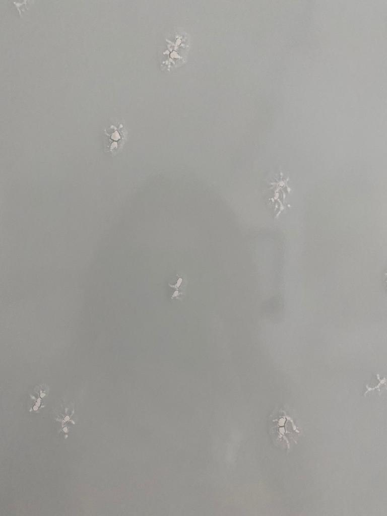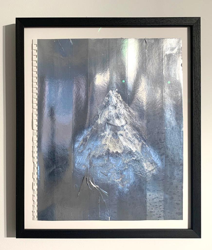 For the works on display, Vital employed ceramic, insulating tape, silicone, and even foam to create lifelike tableaux that cross the threshold of representation into immanence. Droplets of snow seem to emerge from the canvas as if the darting from the sky in a blizzard of grey, invoking the Grisons mountain range where Vital grew up, aptly named for its vernacular monochrome that alternates in shades of grey and white throughout the year. Mountain (2017), for instance returns to the realm of rendering, but only just: the silicone, snowcapped outline it emanates is nearly imperceptible against the aluminum foil tape. Walking around the work one must focus to keep the dimensions in view, insofar as the silicone’s encrustations depict a mountain, rather than veering towards the abstract or informe.