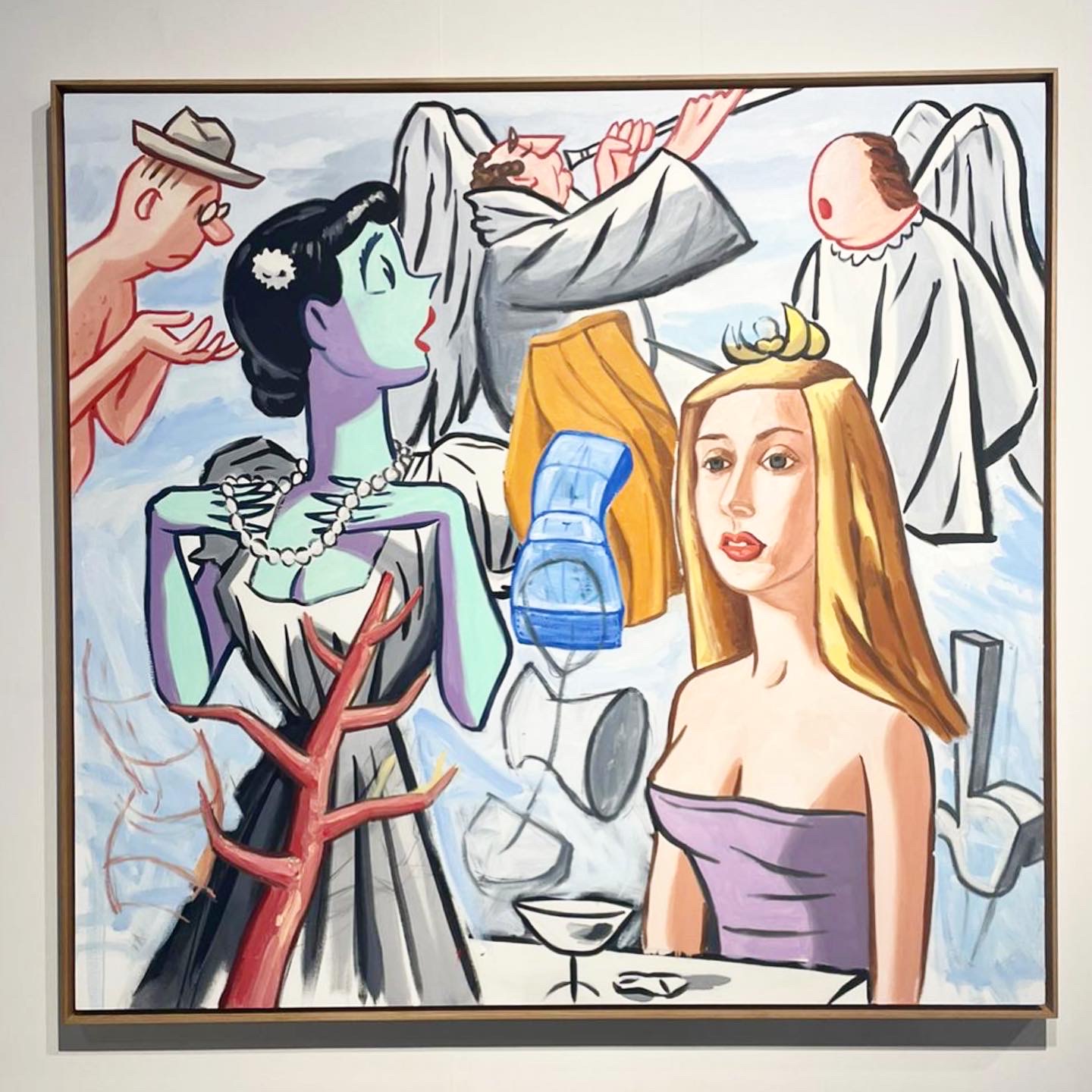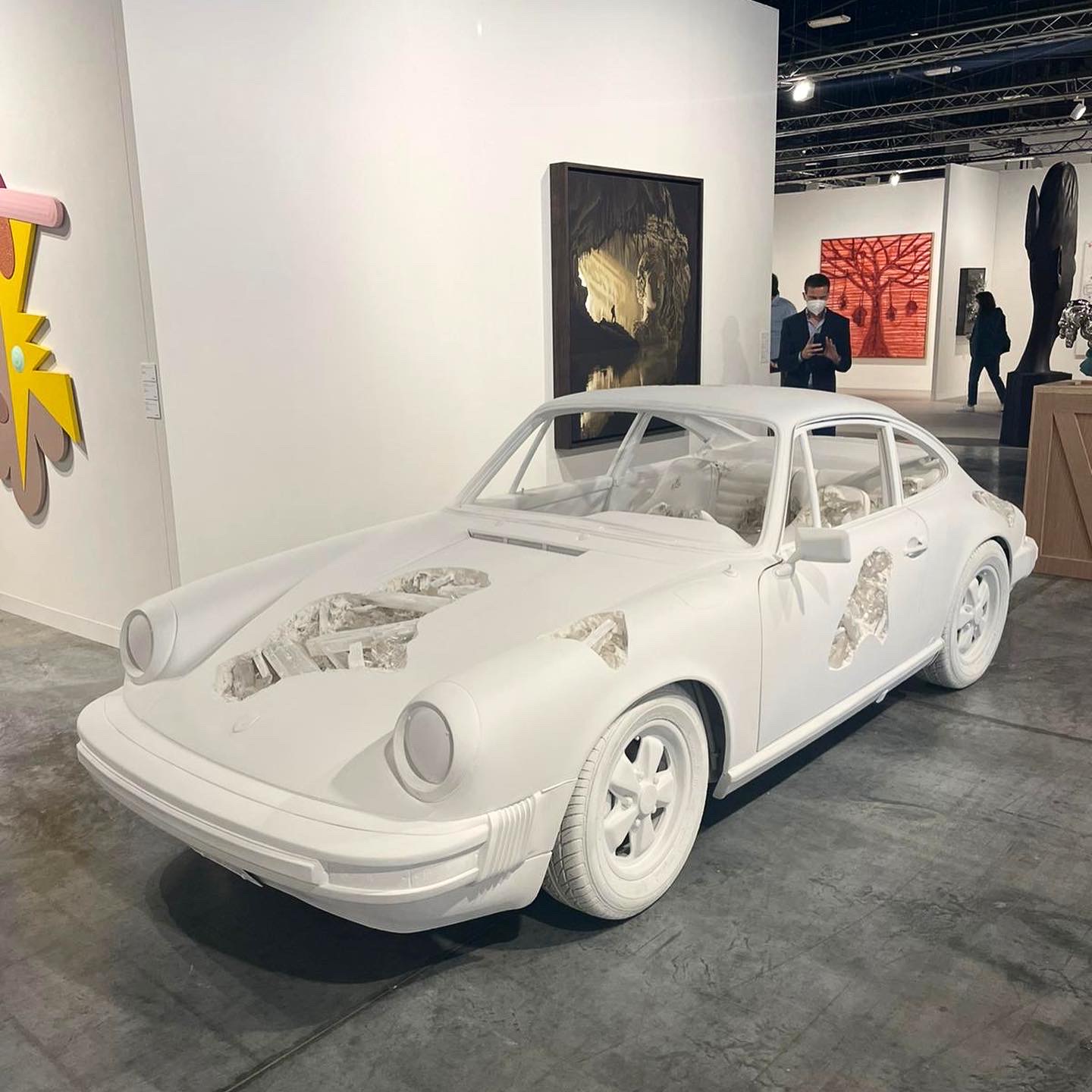 The fair continued its string of striking and ambitious fairs, matching the energy and selection of prior years. At Sadie Coles, one could view a towering depiction of Julian Schnabel, one of the artist’s iconic wax works, meant to be burned down to nothing as an immense candle. At David Kordansky, the gallery was presenting a string of works by gallery artists, including luminescent glass work by Fred Eversley paintings by Rashid Johnson, while at Regen Projects, one could view work by Daniel Richter, while at Galerie Perrotin, one could view a Daniel Arsham sculpture of a classic Porsche, and at Jeffrey Deitch, one could view a selection of iconic works by Keith Haring. Also of note was a striking Ugo Rondinone sculpture at Esther Schipper, towering over visitors in its dense set of blues.