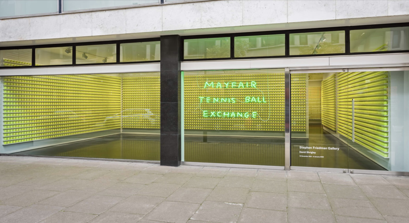 David Shrigley, Mayfair Tennis Ball Exchange (Installation View), via Stephen Friedman