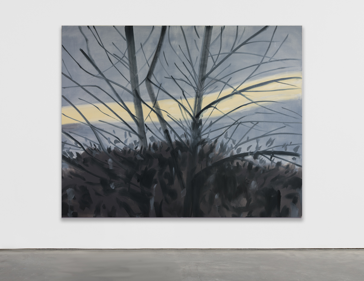 It’s a striking chance to see Katz working in a mode that seems to take much of his past work and push it in new directions. Much in the same way that past work utilized color and space to eke additional energy from his scenes, these works so often seem to do the opposite, depicting dead tree branches and spare country scenes in washes of purple and grey, creating an additional layer of gloom and intensity. It’s what Katz has done best for so long, expressing interior natures and intensities with simple decisions: color, form, movement. Rather than rely just on the structure of the canvas for its messaging, here Katz dives into a world that’s equal parts element and atmosphere, realizing compositions that process the trauma of the past year through emotive, minimal gestures.