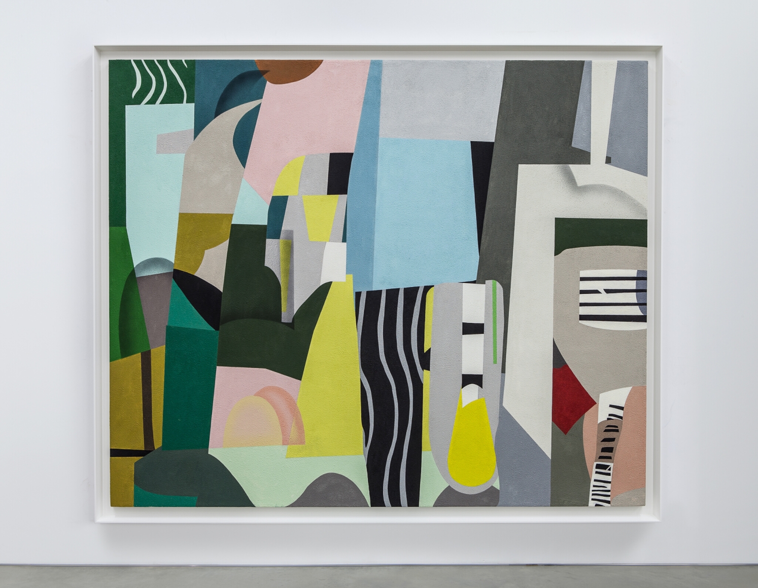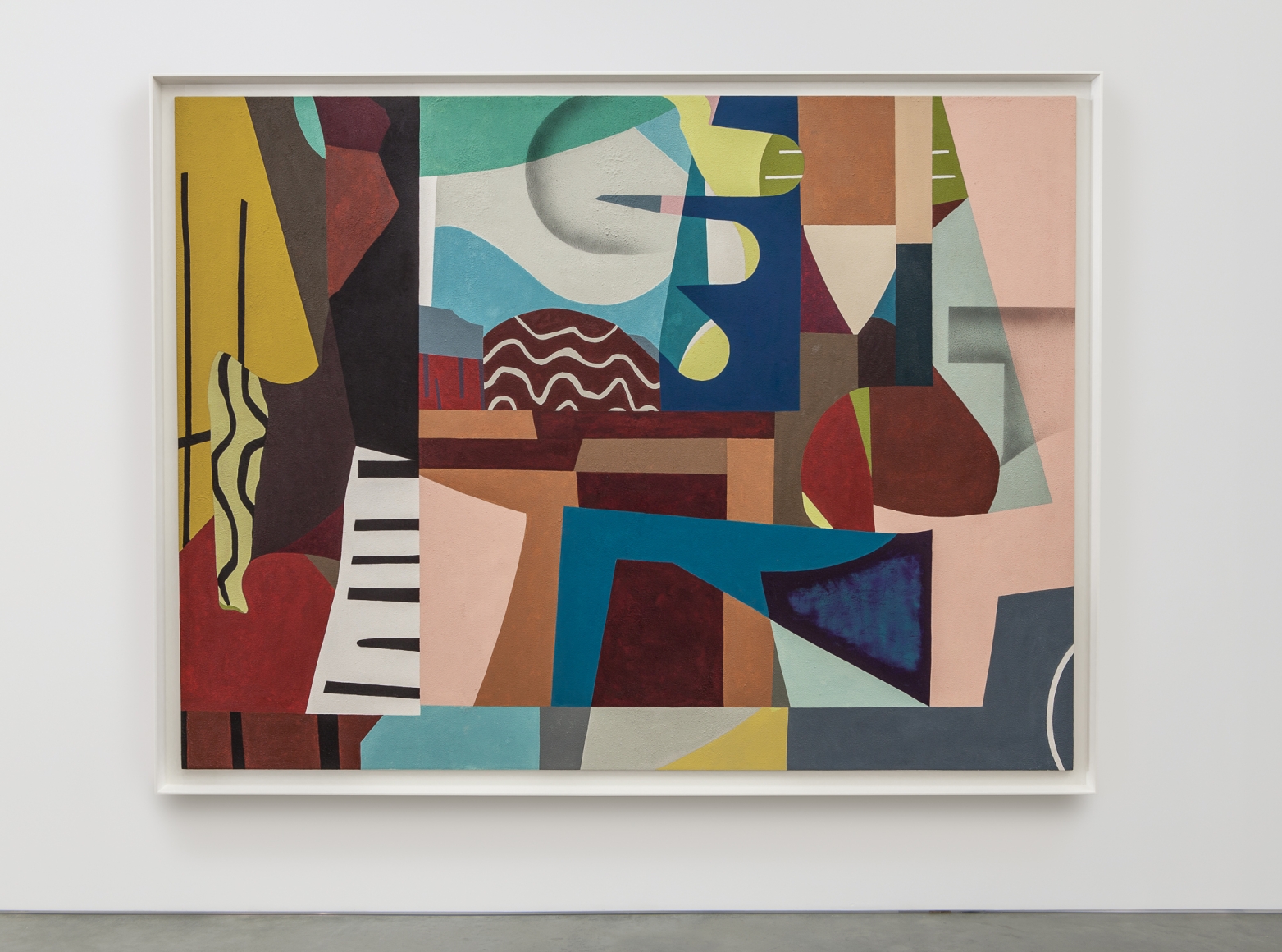 The new paintings employ something of the formal vocabulary of these props, yet combined that mode of work with a series of experimentations and evolutions in his practice that he has developed and honed over several decades of work. Using a computer to trace and layer, sketch and iterate on these compositions, the work becomes both a study in the history of cubism and abstraction, and equally one of concatenation, adding and adding while balancing the surface of the image until a final work emerges, ready to “print.”
