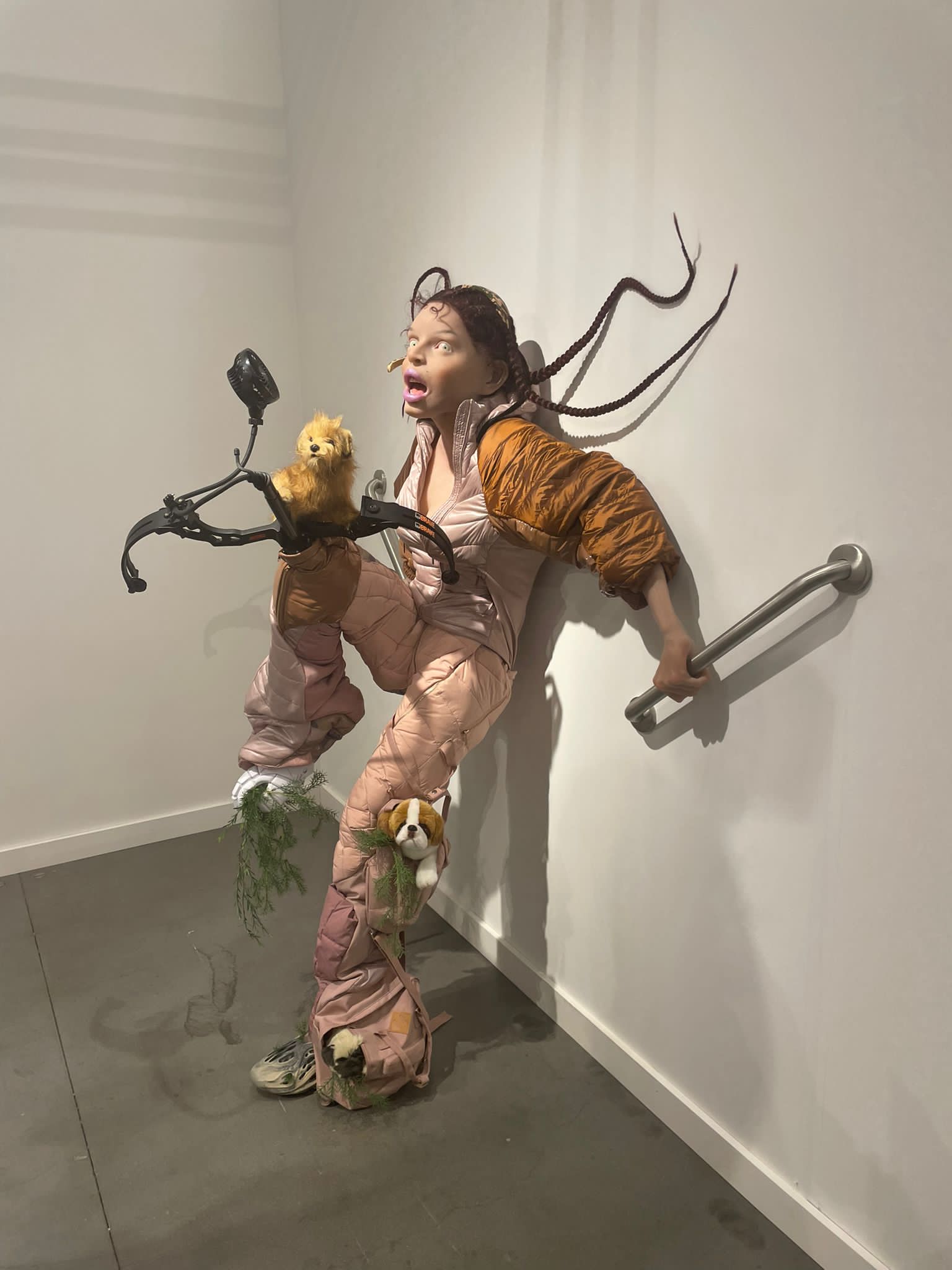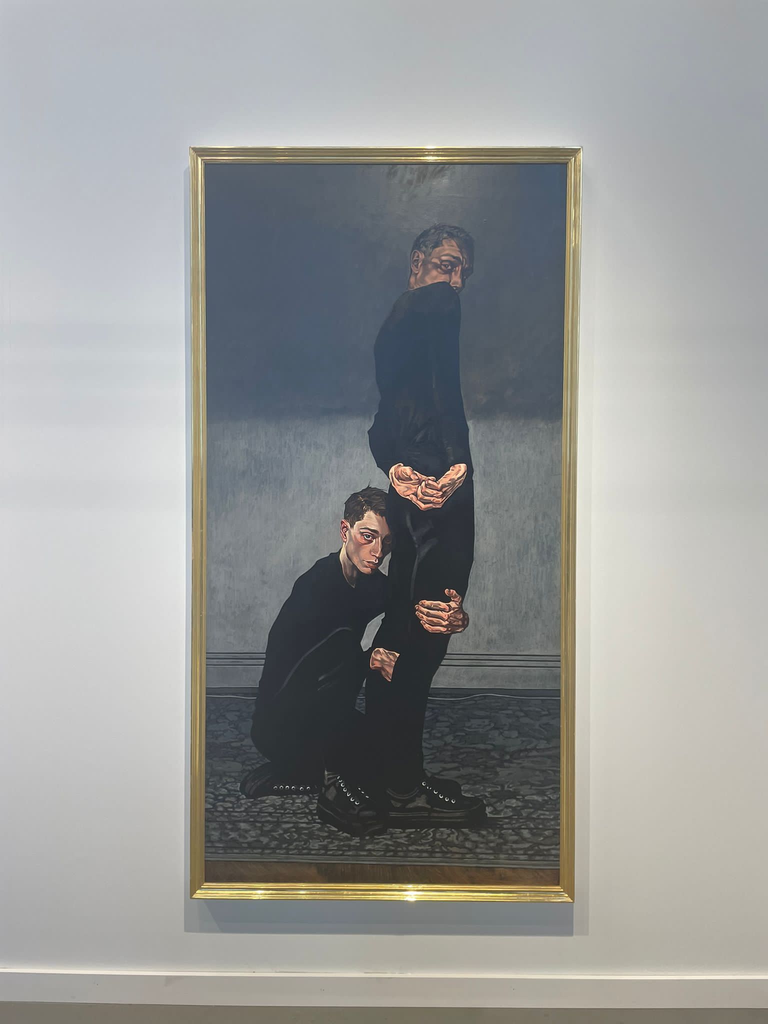 Over at the fair’s Frame section, where young galleries and artists were given special focus, a range of projects were notching similar attention and excitement. Chateau Shatto’s show of work by painter Emma McIntyre was a clear favorite, while at Company, artist Cajsa von Zeipel hyper-animated human models posed a technological surreal, with strange and sexually-charged scenes that mixed a libertine abandon with a close consideration of technology and its framing of these same impulses. A similar note in a different register could be detected at Lomex, where Kye Christensen-Knowles‘s compositions posed a similar sense of charged sexuality and identity, albeit in a slightly more subdued form on canvas.
