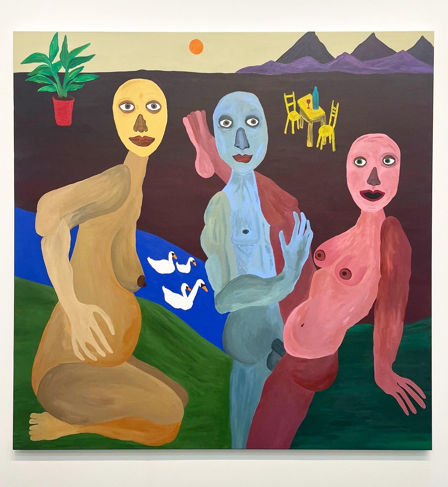 This year, the fair brings with it a diverse selection from 81 members and a total of 120 galleries, art spaces, and non-profit organizations spanning 37 cities and 18 countries, including Paris, Tokyo, Istanbul, Kyiv, Buenos Aires, and Mexico City. The fair will also feature NADA Presents, the organization’s signature programming series of conversations, performances, and events. There’s a range of projects and works of note on view, like artist Mickey Lee’s expressive, colorful figures on view in the One Trick Pony booth, or painter Tim Brawner‘s pieces on view at Fragment, enigmatic, monochrome compositions of various animals and figures in strange relations to space.
