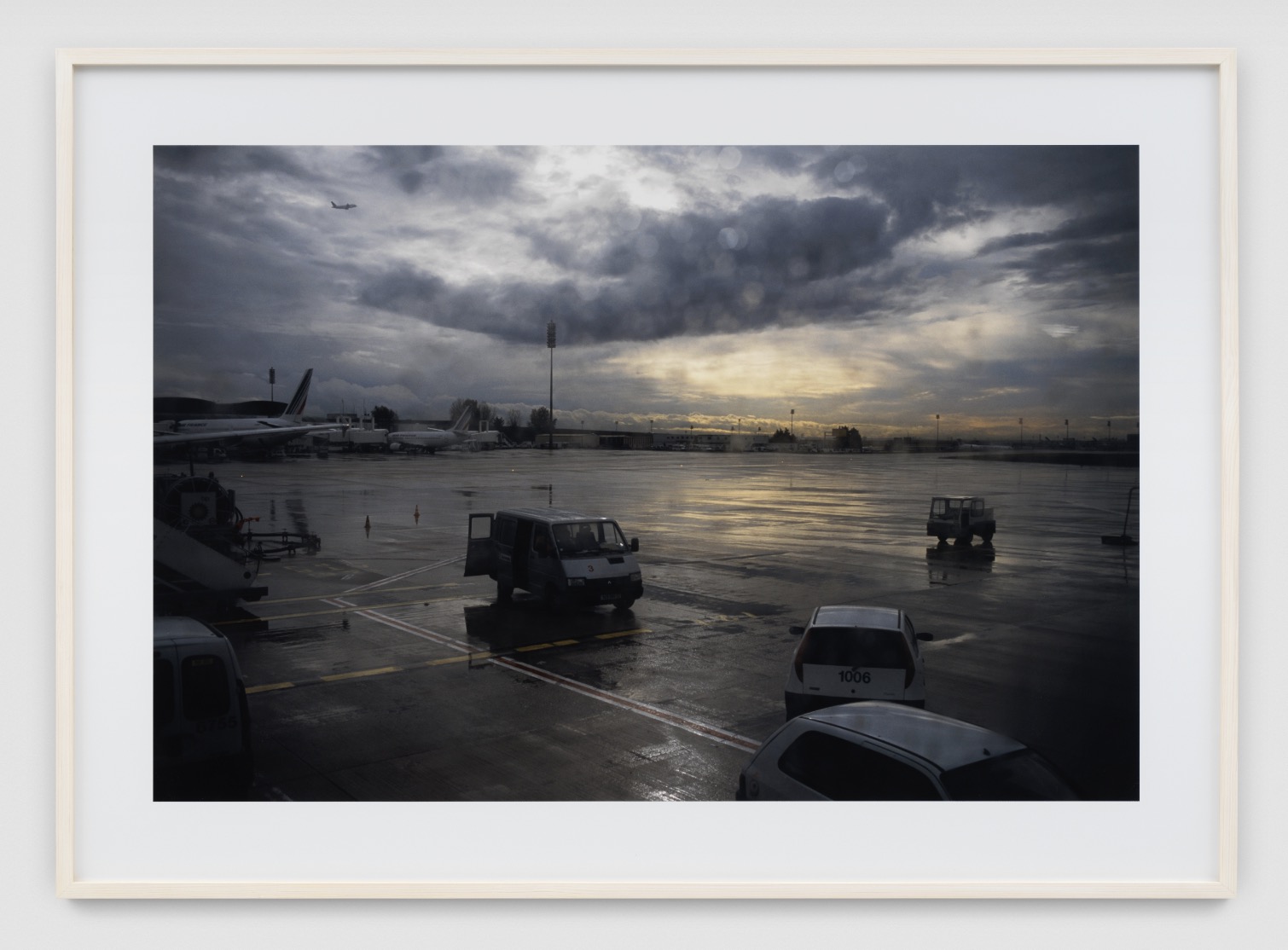 On view this month at Galerie Eva Presenhuber presents Airports and Cars, the gallery’s fourth exhibition by Peter Fischli and the late David Weiss. Fischli Weiss began the Airports series in 1987 and continued it for 25 years, a project that saw them repeatedly photograph and document the various scenes and landscapes of international airports, focusing on tarmacs and loading zones—the abstract-opaque logistical space, which passengers predominantly glimpse through panes of glass and see themselves detached from.