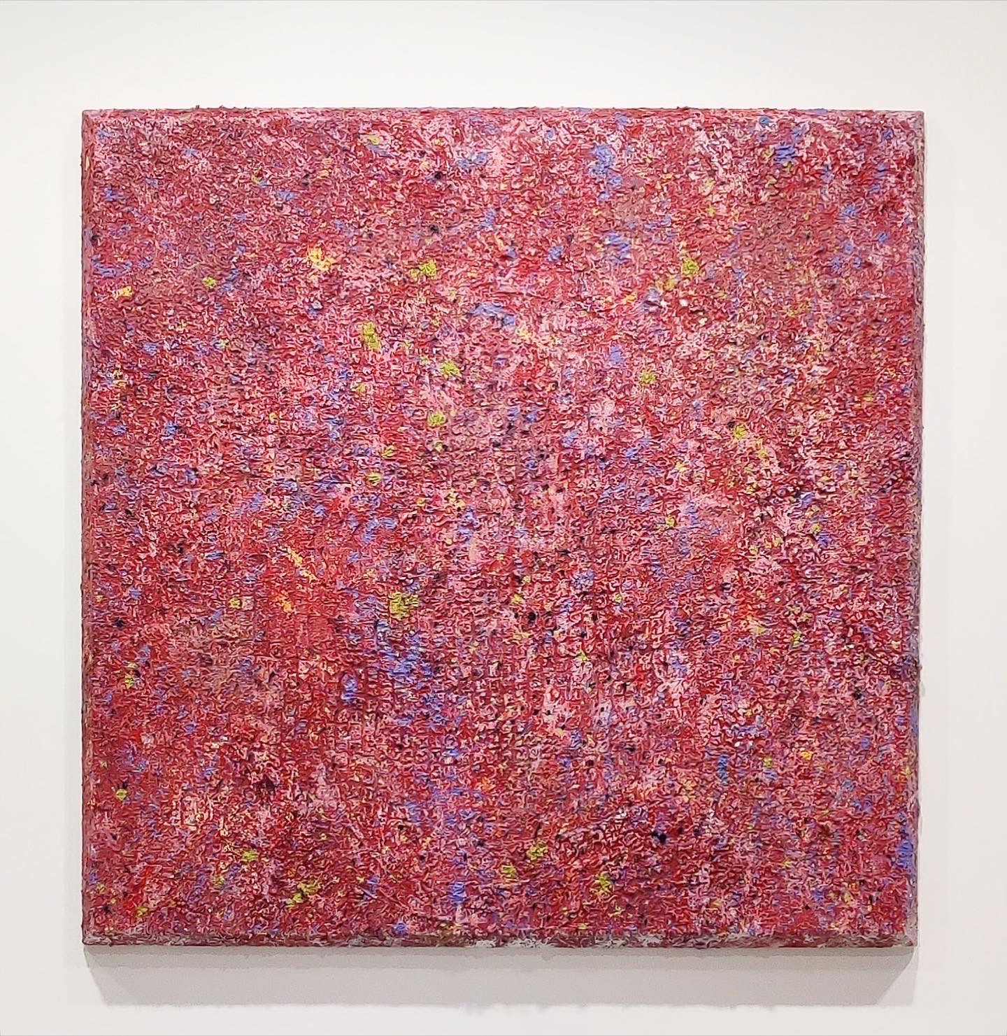 Throughout his nearly seven-decade career, Gilliam invented and continuously reinvented a singular and deeply influential approach to abstraction, working both with paint and with the canvas itself in radically new and revolutionary ways. A leading member of the Washington Color School in the 1960s, Gilliam’s paintings, sculptures, and installations continued to draw on myriad influences including music, poetry, and politics throughout his career. These monumental late paintings underscore the artist’s long engagement with the bevelled-edge canvas, here turned towards material landscapes, constructed from densely layered and richly saturated pigment, applied through a vast range of expressive gestures and experimental techniques of mark-making. Rich spatter and flickers of color negotiate with subtle line-work and multiple layers of paint, creating networks of color that provide a near endless series of entry points for the work, mass networks of material that underscore experimentations with acrylic and a range of other materials to arrive at meticulously rendered tonalities.