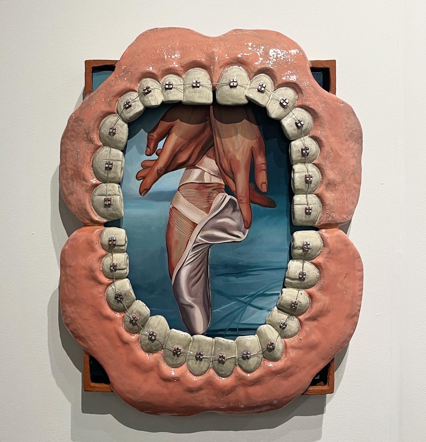 The work matched this comfortable and communal experience with a selection of works that ran from expressive paintings and sculpture to built out environments that matched vibrant energy with conceptual rigor. At the Brussels-based Sorry We’re Closed, the gallery was presenting a series of sculptures by artist Roger Herman and paintings by Milo Matthieu, exhibited in a bright yellow booth build-out that accented each artist’s energetic styles. At Charles Moffett Gallery, a similarly kinetic body of work by painter Maggie Ellis, showcasing chaotic and often disturbing scenes. Another highlight came from New York’s Housing, where TaÃna Cruz was showcasing a body of works that brought a similarly sureal and disturbing series of figuration, while at Bradley Ertaskiran, artist Stephanie Temma Hier was showcasing a body of work that mixed together ceramics and painting to create densely-layered and otherworldly works.