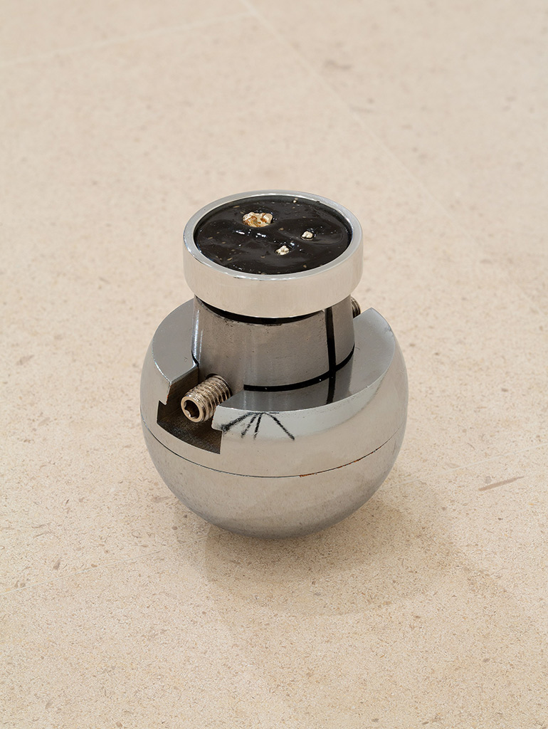 Mooney’s work is particularly notable in its emphasis on structure and infrastructure, studying the connective systems and materials of mechanical processes and then taking these elements towards now modes. Electric and hydraulic circuits operate, interlock, and give rise new behaviors, and conspire to present new processes, or even merely to suggest their possibility. In Outlet (2022), a glass element is shaped after a float valve, a device that measures and manages water levels. As this work reaches out and marks a height level, it suggests a sense of volume and dissolves any sense of quantitative metrics, pointing to the unscalable nature of space in living perception. Outlet makes active the ways in which sensation extends itself in order to perceive space or size. The sculpture enters the gallery space with an embodied memory of tangible volume co-entangled with recollections of peripheral maintenance work. Process, function and work become entangled with memory, time and space, a fascinating study in the lived experience of labor and work, industry and invention.