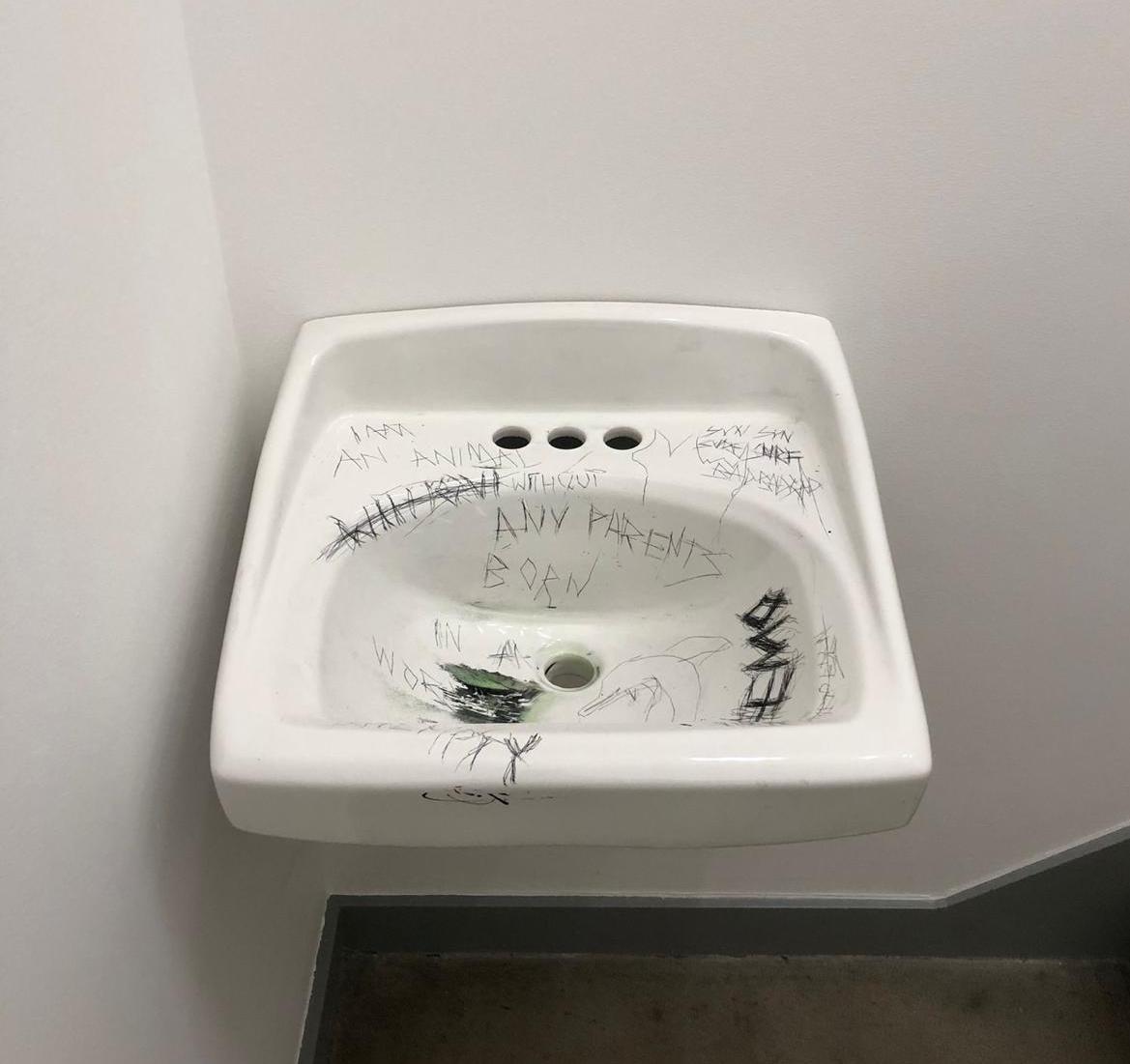 Marking the largest presentation of the artist’s work to date in the United States, Anne Imhof’s solo exhibition EMO, which opened this month at Sprüth Magers’s Los Angeles exhibition space, brings together several bodies of work across multiple mediums, putting each in dialogue with found objects in ways that implicate visitors’ bodies as they move through the space, at turns exalting and frustrating the viewing experience. Imhof, who has pioneered a visceral and impassioned body of work over the past decade, has long drawn on discourses of youth culture, repressed energies, pop signifiers and a range of cultural and social frameworks to explore the body’s relation to society, and the contingent effects each have on the other, here returns to the labyrinthine structures of previous shows to explore these notions once again.