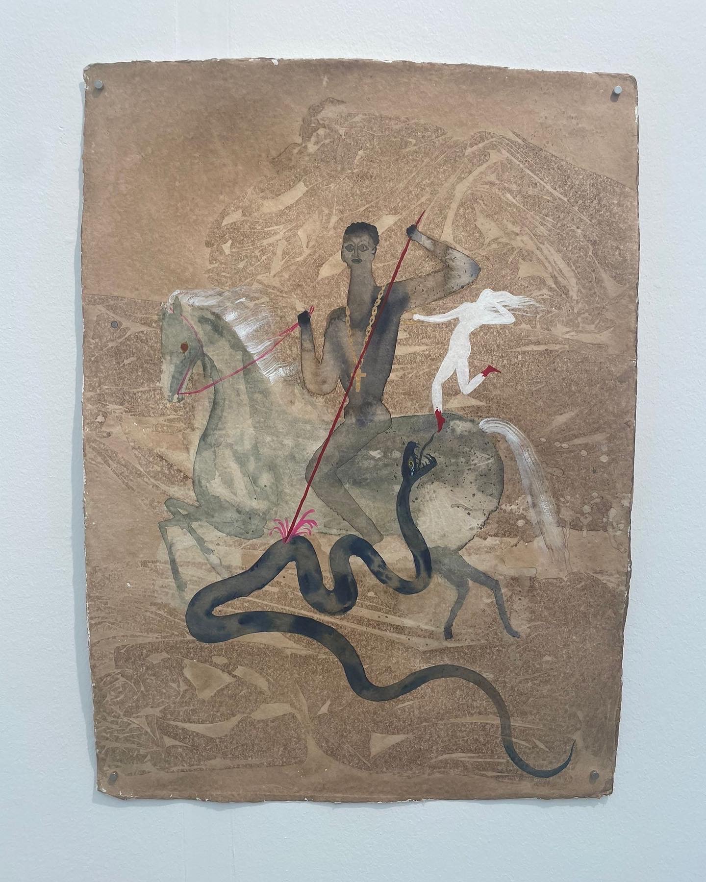 As always, the fair’s offerings managed to blend an impressive and expansive roster of blue-chip works, emerging artists, and exploratory programming that gave its run the continued sense of vitality and energy that has long been a hallmark of the fair brand. Browsing the well-appointed aisles of the tent, spread out across the lawns of the park, one could view works from around the globe before stepping out for a brisk refresher and a walk by the waters. At Clearing, a surreal arrangement by Marguerite Humeau was on view, mixing together natural forms and surreal material juxtapositions, while over at Hauser & Wirth, one could view a solo booth dedicated to the work of artist Barbara Chase Riboud. Victoria Miro was also a draw all weekend, featuring a string of works by gallery artists including pieces by Philip Guston, Chantal Jaffe, and more.