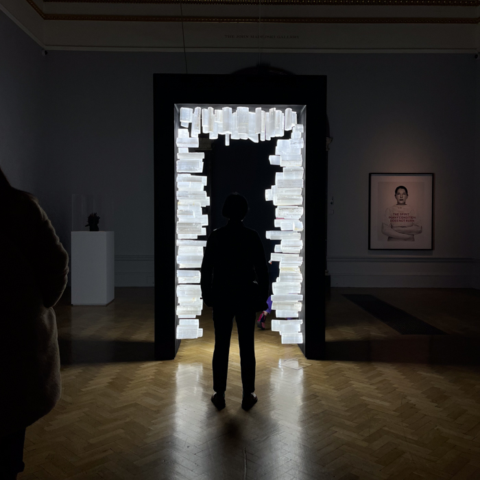 A somewhat less impressive part of the show is The Era of Crystals, her current phase. This part of the exhibition is interactive and fills the latter end of the exhibition. From the copper tubs filled with camomile to crystal ‘shoes of departure’, this part of the show feels a bit like entering a Day spa ‘apothecary’ on King’s Road. To my surprise, I wasn’t offered an herbal tea when lying on the crystal embalming table. Portal, is the crowning glory, a 300 cm tall arch adorned with selenite crystals. Intending to symbolise transition, it feels a little too Instagramable to have much depth. This era is certainly not the raw Abramović we’re accustomed to, it presents Abramović as the self-indulgent ‘Bourgois Bohemian’ we all hope she has not become. These crystalline works provide a stark, and somewhat disappointing, contrast with the dangerous feats of her early days.
