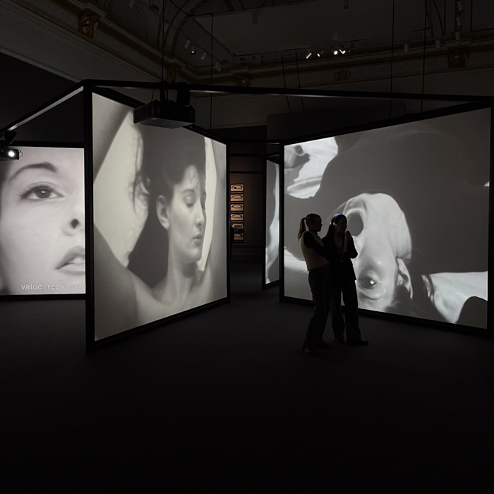 Throughout her career, Abramović has dealt with the enormous themes of Life, Death, Memory, Love and Sex. In this retrospective, no stone is left unturned. Far from the stale exhibitions often on show at the RA, Abramović’s entices with a mix of live performances, instillation and archive video. Like her, this show is determined to make you feel. In this exhibition, footage from her 50-year career is combined with four live reenactments: Impoderabillia (1977), Nude with Skeleton (2002), Luminosity (1997), and The House with the Ocean View (2002). Each reenactment is staged by performers trained in the Abramović method, a technique inspired by the art of Tadeusz Kantor and the direction of Jerzy Grotowski. These four performances were pivotal in the progression of Abramović’s career. Although other works like Rhythm 0 (1974) and Rest Energy (1980), displayed in video format, were also hugely influential.