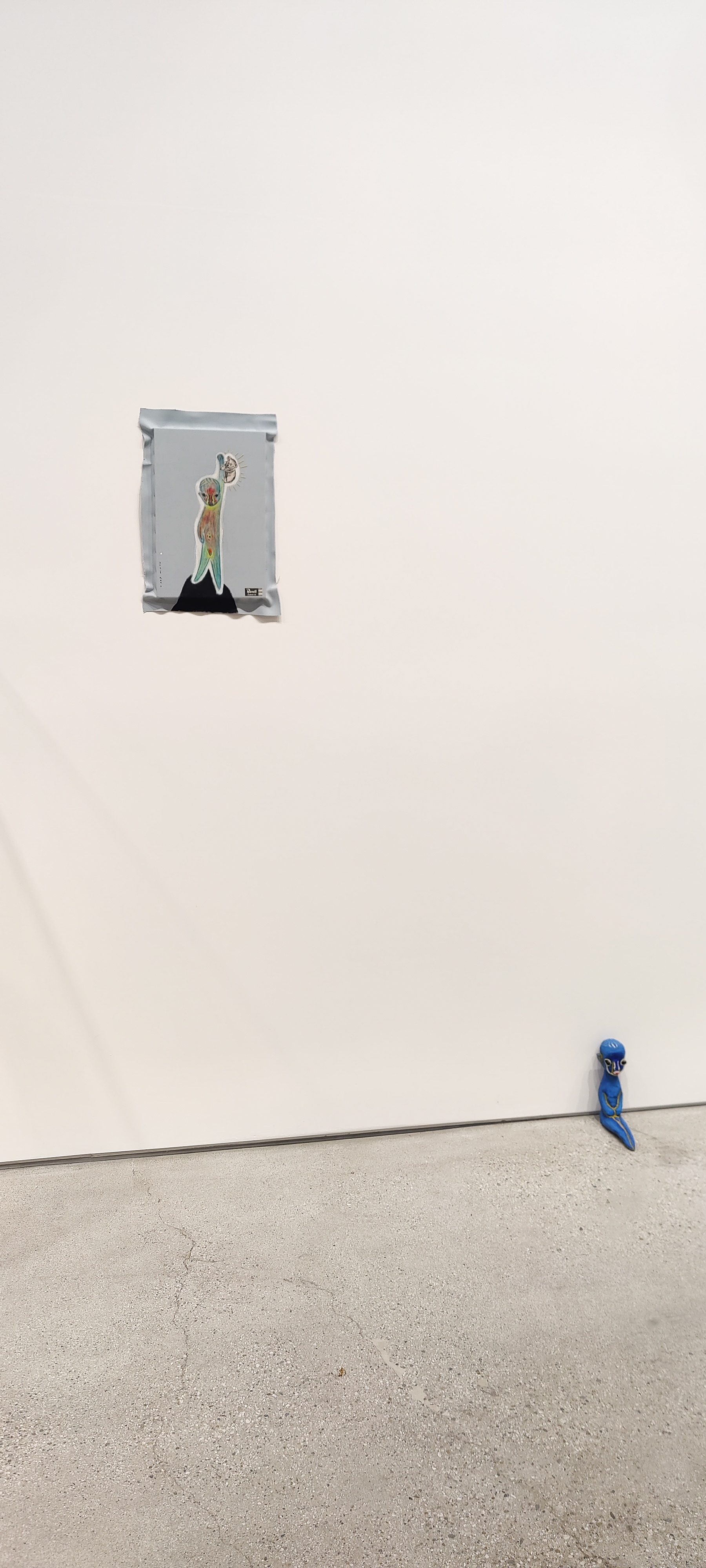 The exhibition at Perrotin’s Los Angeles gallery features Kato’s recent works, including sculptures and paintings. Among the highlights is a large fabric figure, over 17 feet tall, that is suspended in the gallery, as well as smaller plastic model kits that allow visitors to create miniature versions of Kato’s sculptures. These works showcase Kato’s use of diverse materials and his ability to engage with various forms of artistic expression.